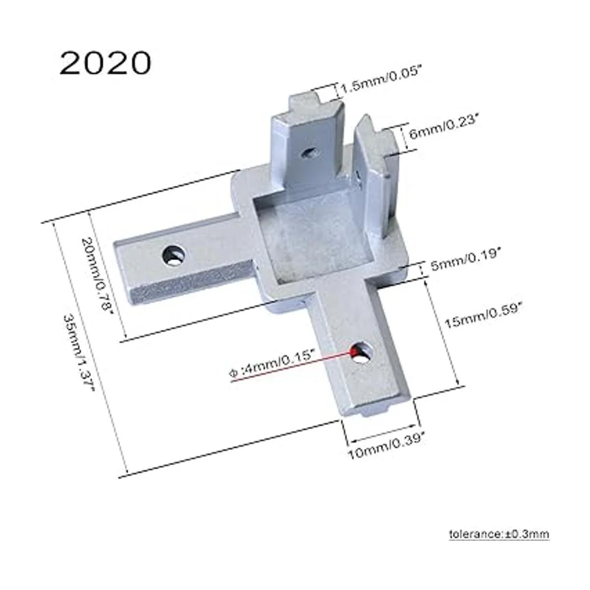 Boeray Conector de soporte de esquina con tornillos de montaje para perfil de extrusión de aluminio serie 2020, 4 unidades