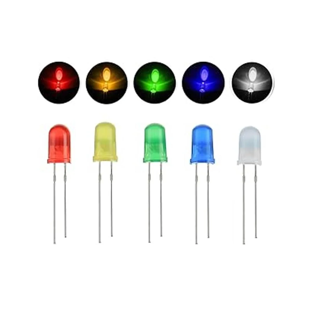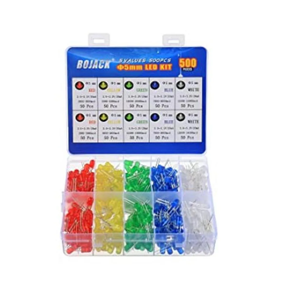 BOJACK 5 colores, 500 piezas de luces LED de diodo de 0.197 in, paquete de luces de bombillas brillantes, componentes electrónicos, piezas de diodos emisores de luz de 0.197 in