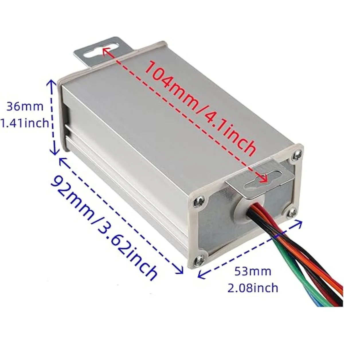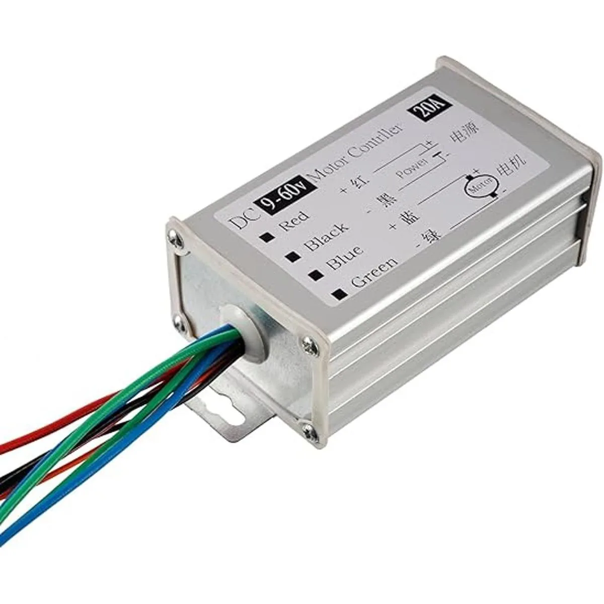 El rango de voltaje de entrada del controlador de velocidad del motor es de 9 a 60 V, el rango de corriente de salida es de 0 a 20 A, la potencia continua es de 12