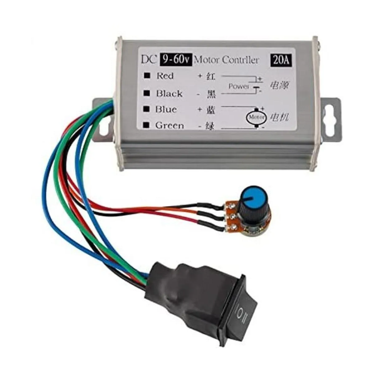 BOJACK Controlador de velocidad del motor, 9 V60 V, 12 V, 24 V, 36 V, 48 V, 60 V, controlador de motor, módulo de control de ancho de pulso del motor, regulador, regulador de regulación PWM, monitor de 20 A, 1200 W, regulador de intensidad con perilla de interruptor