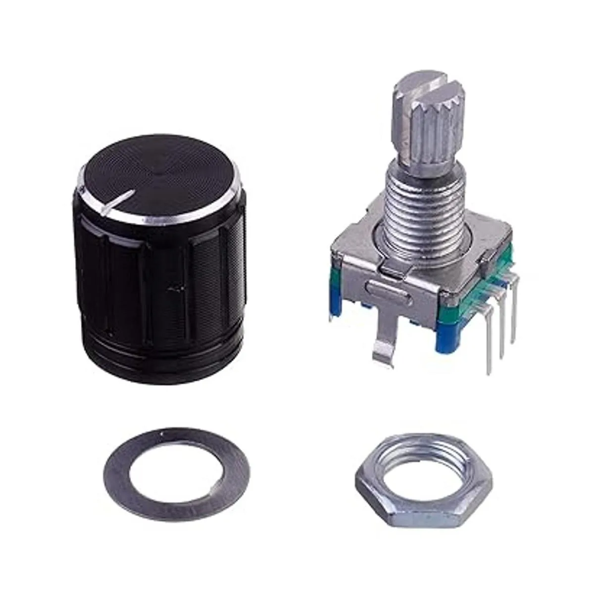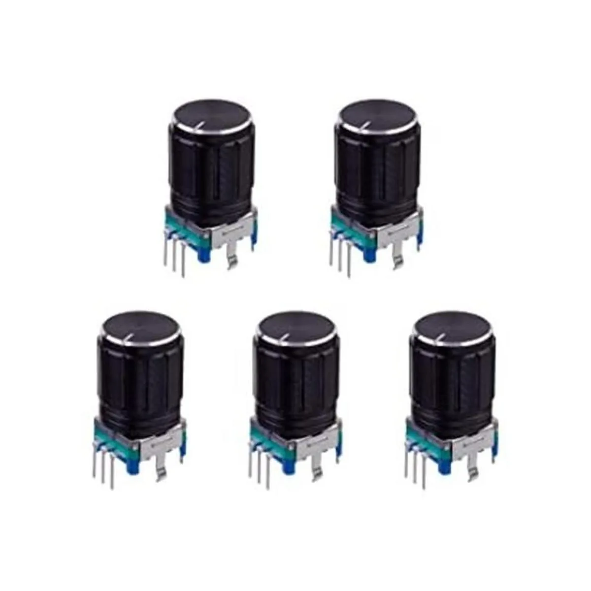 BOJACK EC11 Potenciómetro digital de audio de 360 grados, 5 pines, codificador rotativo, interruptor de código potenciómetro con tapa de perilla paquete de 5 unidades