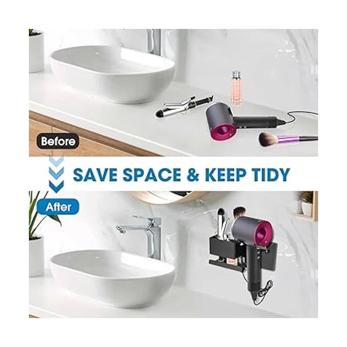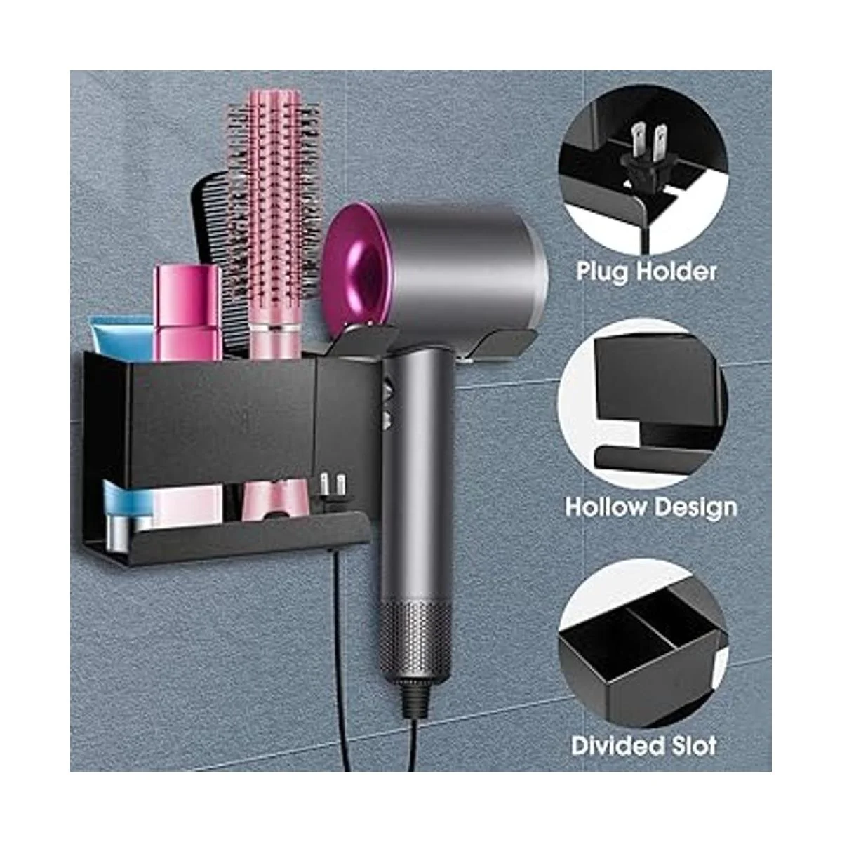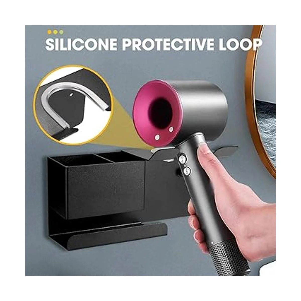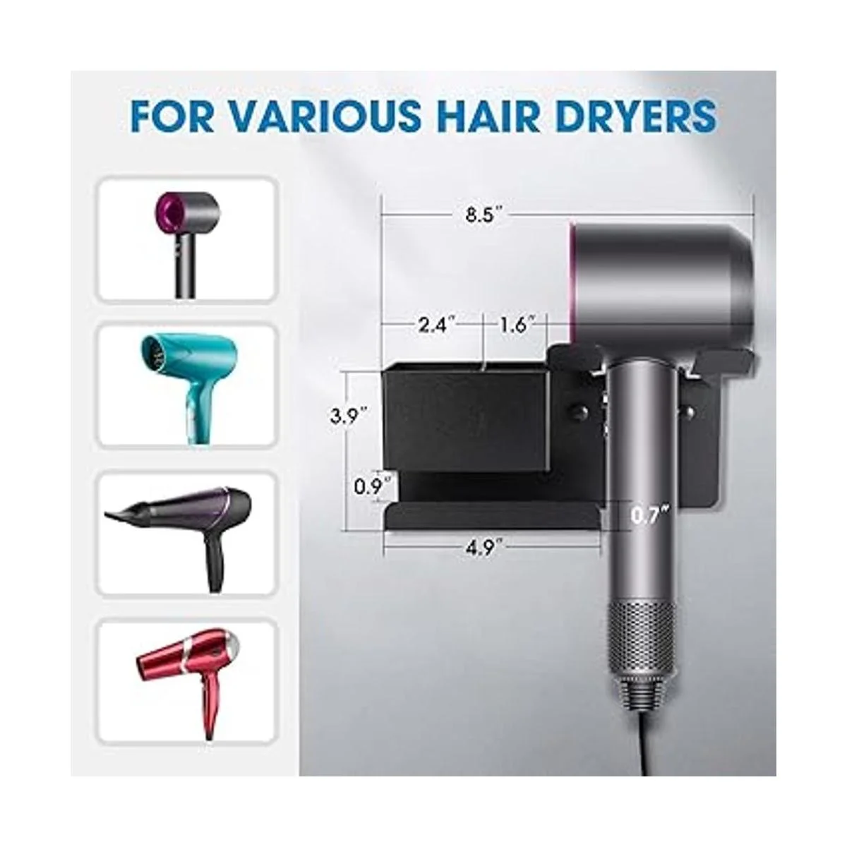 BOJDOPIE Soporte para secador de pelo montado en la pared, organizador de secadora de pelo multifuncional de aleación de aluminio para Dyson Supersonic, color negro Morden