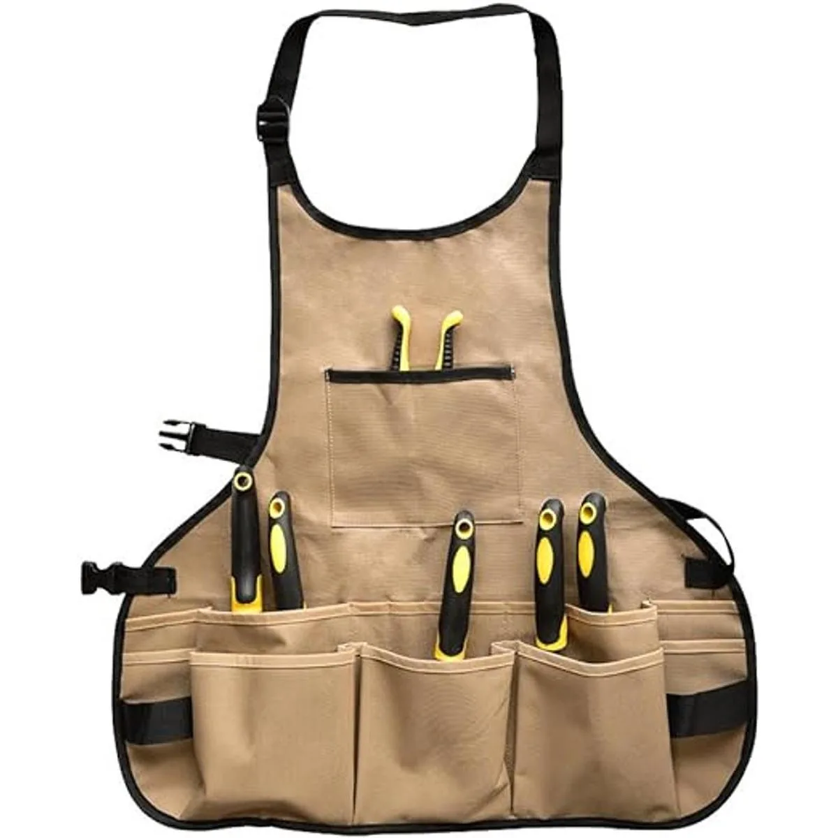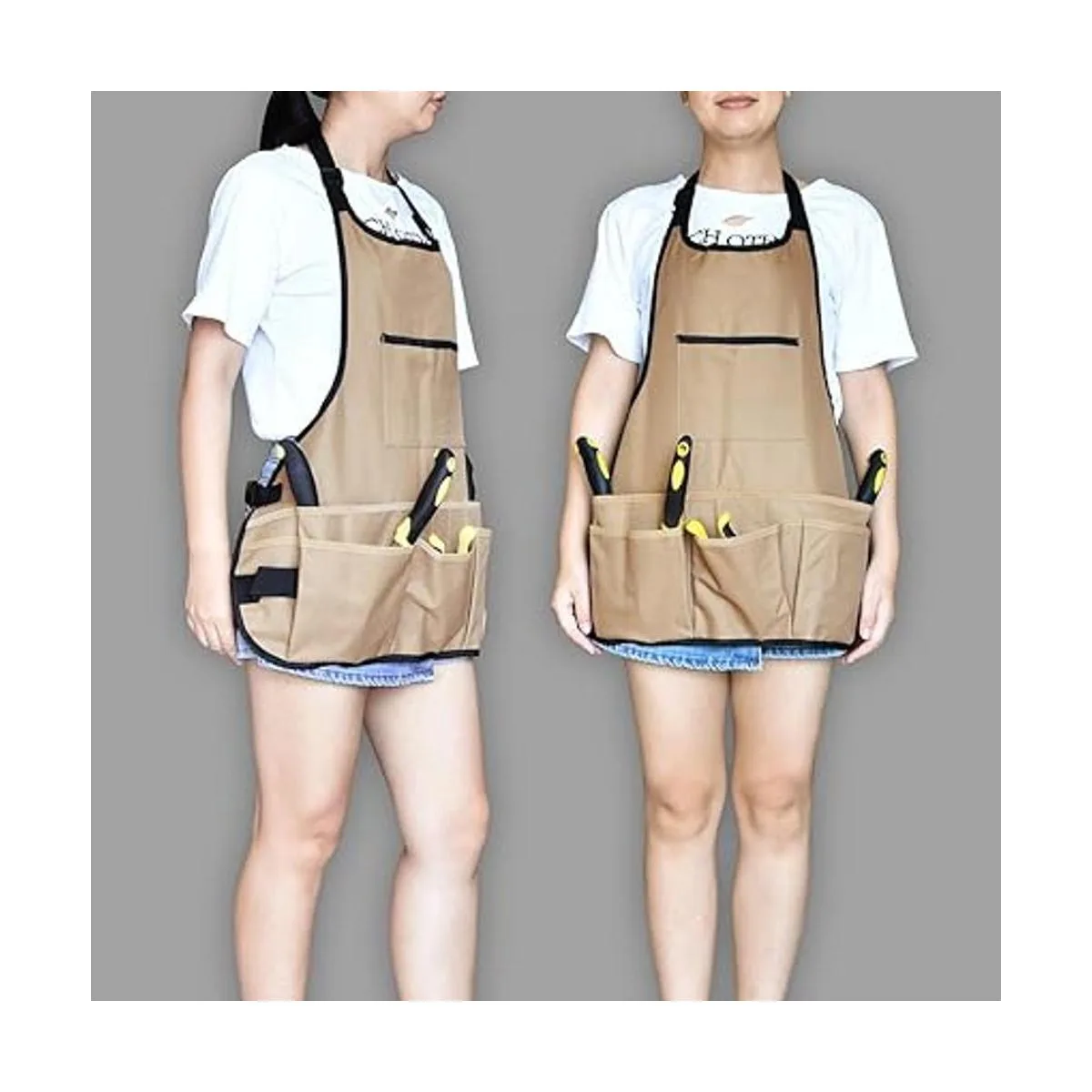 Tamaño universal para múltiples funciones: 23 pulgadas de ancho x 24 pulgadas de alto para hombres y mujeres de todas las formas y tamaños, se adapta a una cintura máxima de 47.2 pulgadas, el delantal de herramientas es adecuado para carpintería, cocina, limpieza de jardín, cuidado del césped, reparaciones del hogar, soldadura y así sucesivamente, mejora el espacio para tu encantador hogar y jardinería. Nota: las herramientas de jardín no están incluidas