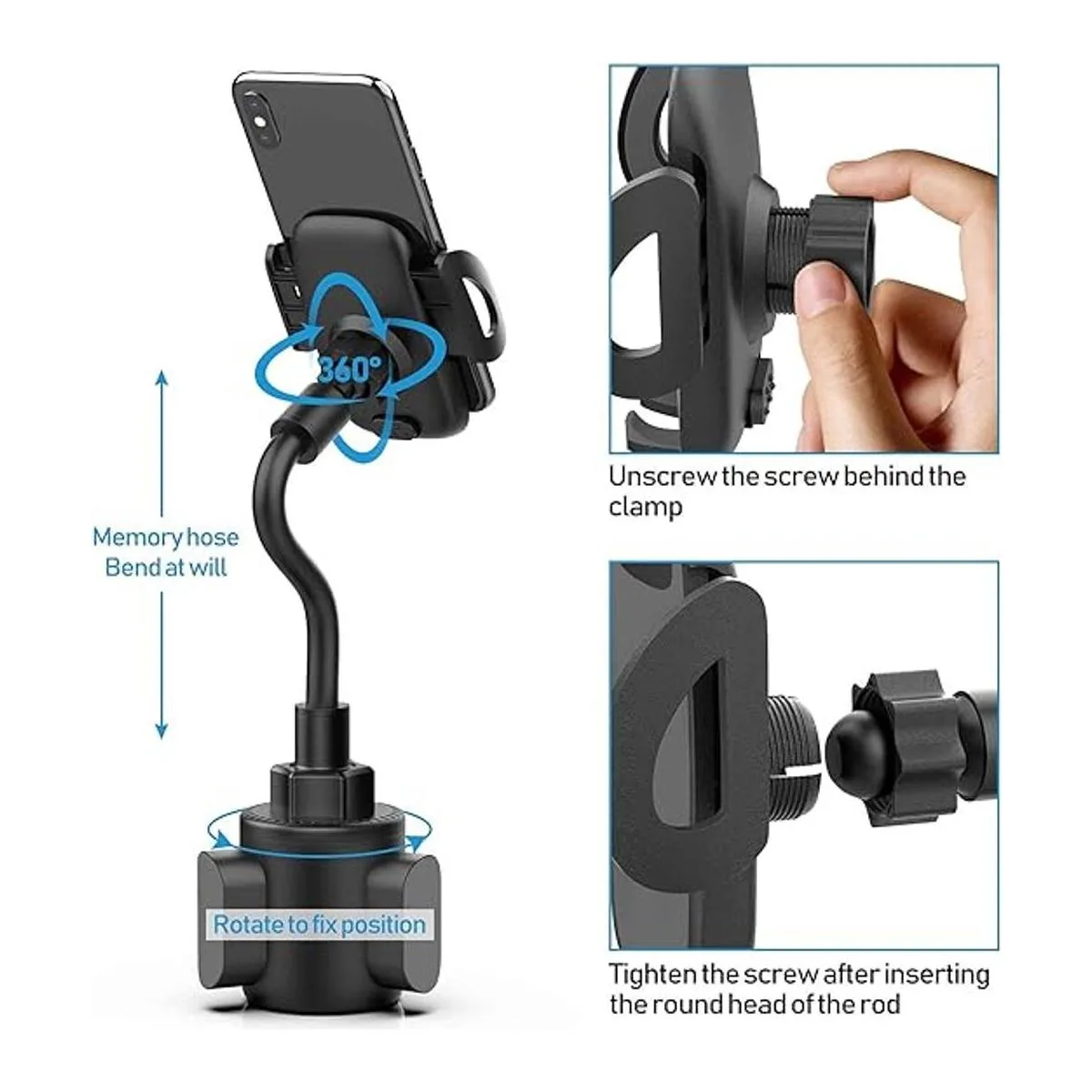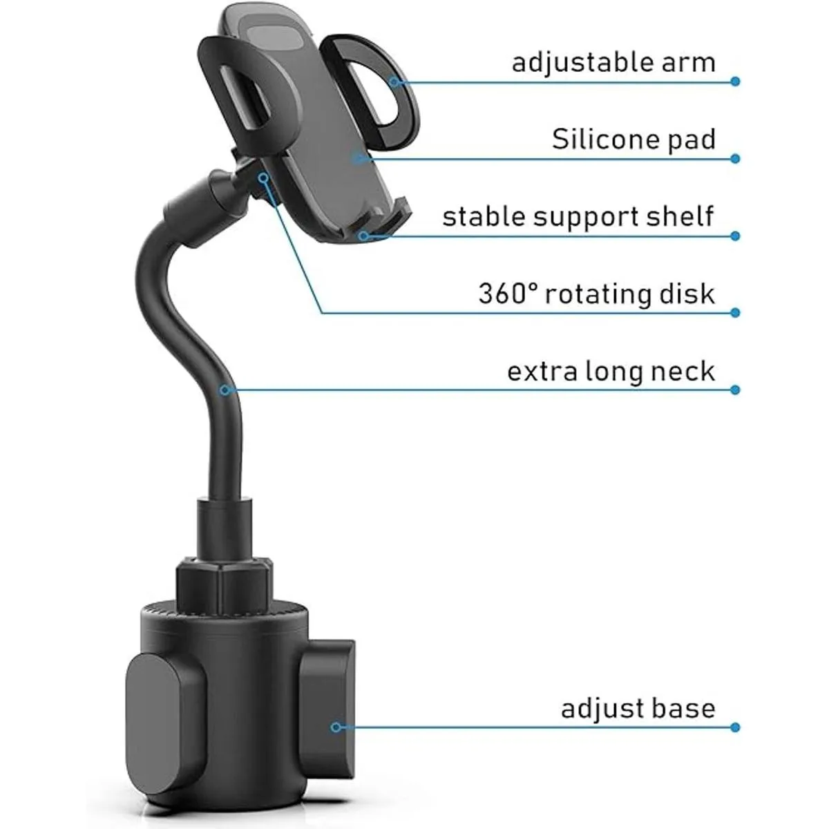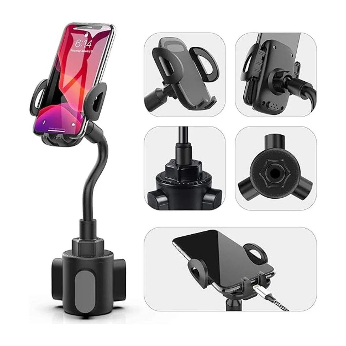 Bokilino Soporte de portavasos de auto, Bokilino Soporte de portavasos de auto para celular, universal, ajustable, soporte de cuello de cisne, soporte de auto para teléfono celular, iPhone, Samsung, Huawei, LG, Sony, Nokia color negro