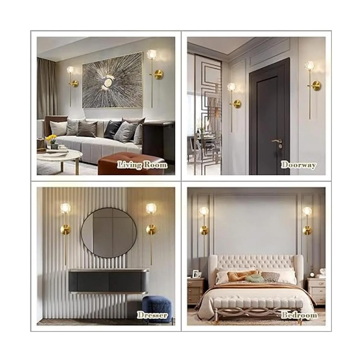 BOKT Lámpara de pared de bola de cristal de lujo moderna para montar en la pared, luz de latón antiguo para o sala de estar, baño, dormitorio y pasillo, iluminación de aplique de pared 1 luz2 unidades