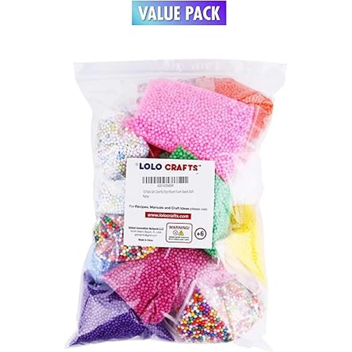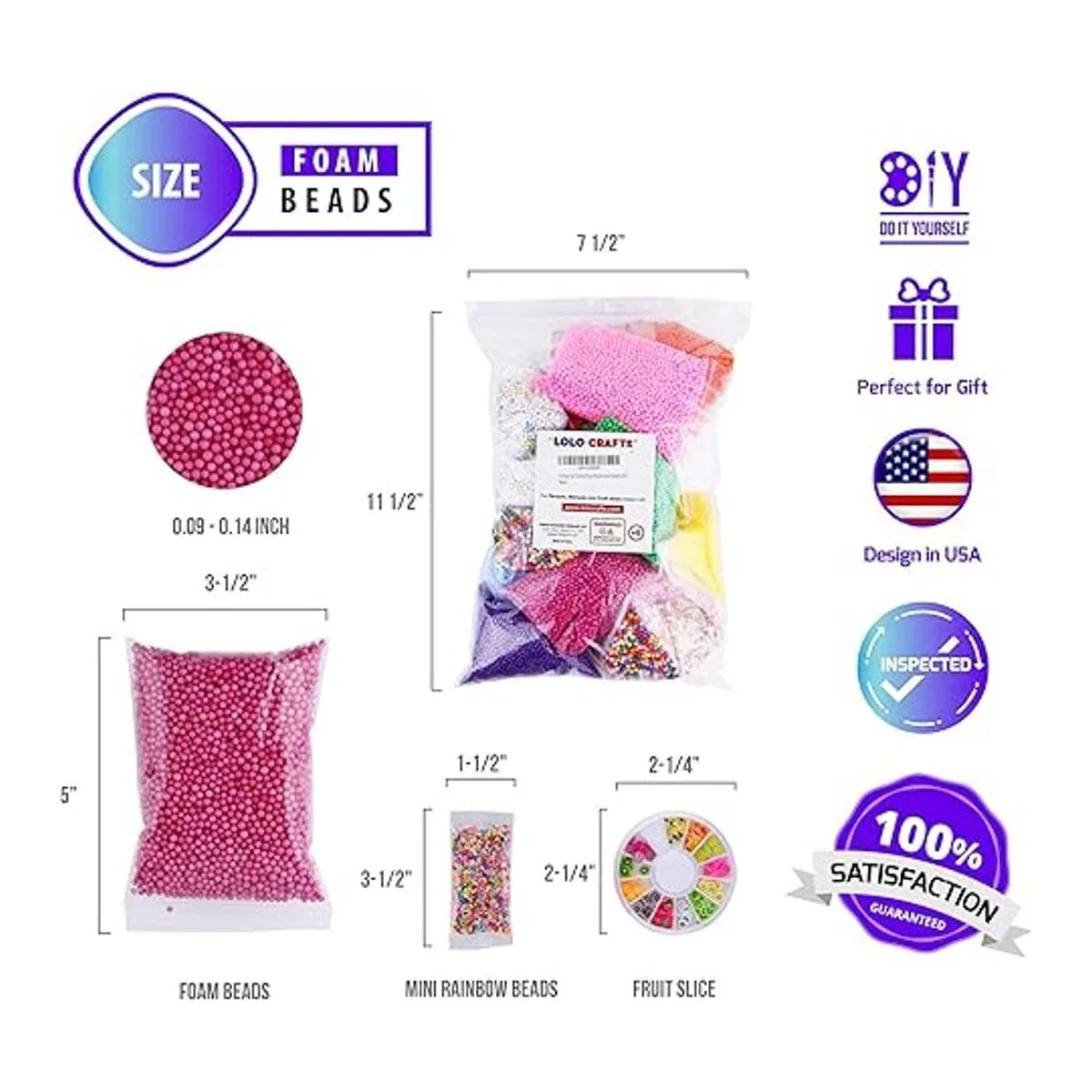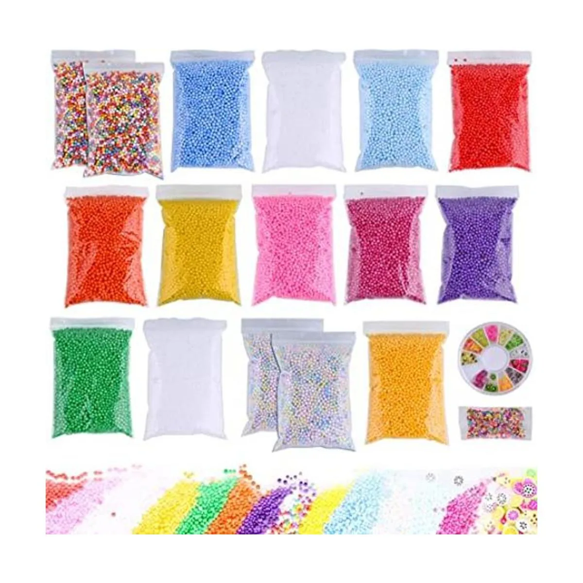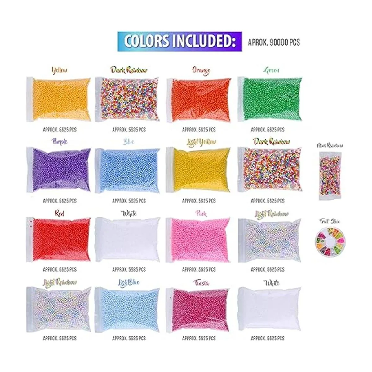 Paquete de gran variedad Lolo Crafts 90.000 piezas o 18 paquetes de suministros de slime incluye 12 paquetes de cuentas de espuma de color sólido 1 rosa, 1 fucsia, 1 morado, 1 naranja, 1 rojo, 1 azul claro, 1 amarillo, 1 amarillo claro, 1 verde, 2 blancos, 2 paquetes de cuentas de espuma arcoíris claro, 2 paquetes de cuentas de espuma oscuras Cuentas Arcoíris, 1 Paquete de rodajas de frutas y 1 paquete de mini cuentas arcoíris; cada cuenta de bola de espuma tiene un tamaño perfecto que mide 0.10.14 pulgadas o 0.0980.138 in
