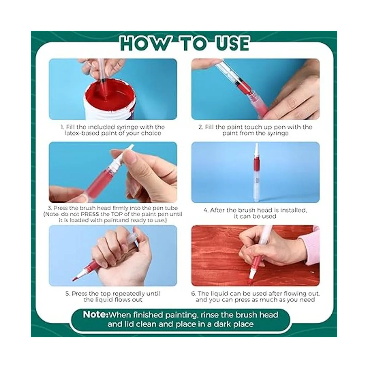 Accesorios de relleno considerados: cada bolígrafo de pincel está equipado con un accesorio de relleno, la capacidad del accesorio de relleno de bolígrafo de repuesto es de 0.1 fl oz y la longitud es de aproximadamente 3.5 in, lo que hace que sea fácil llenar la pintura en el bolígrafo