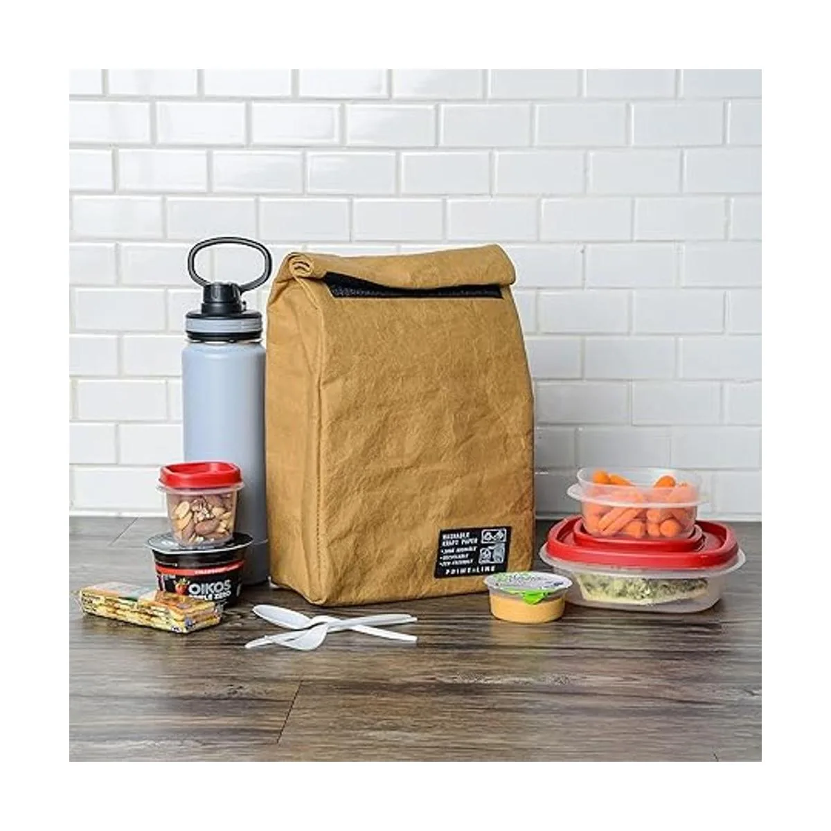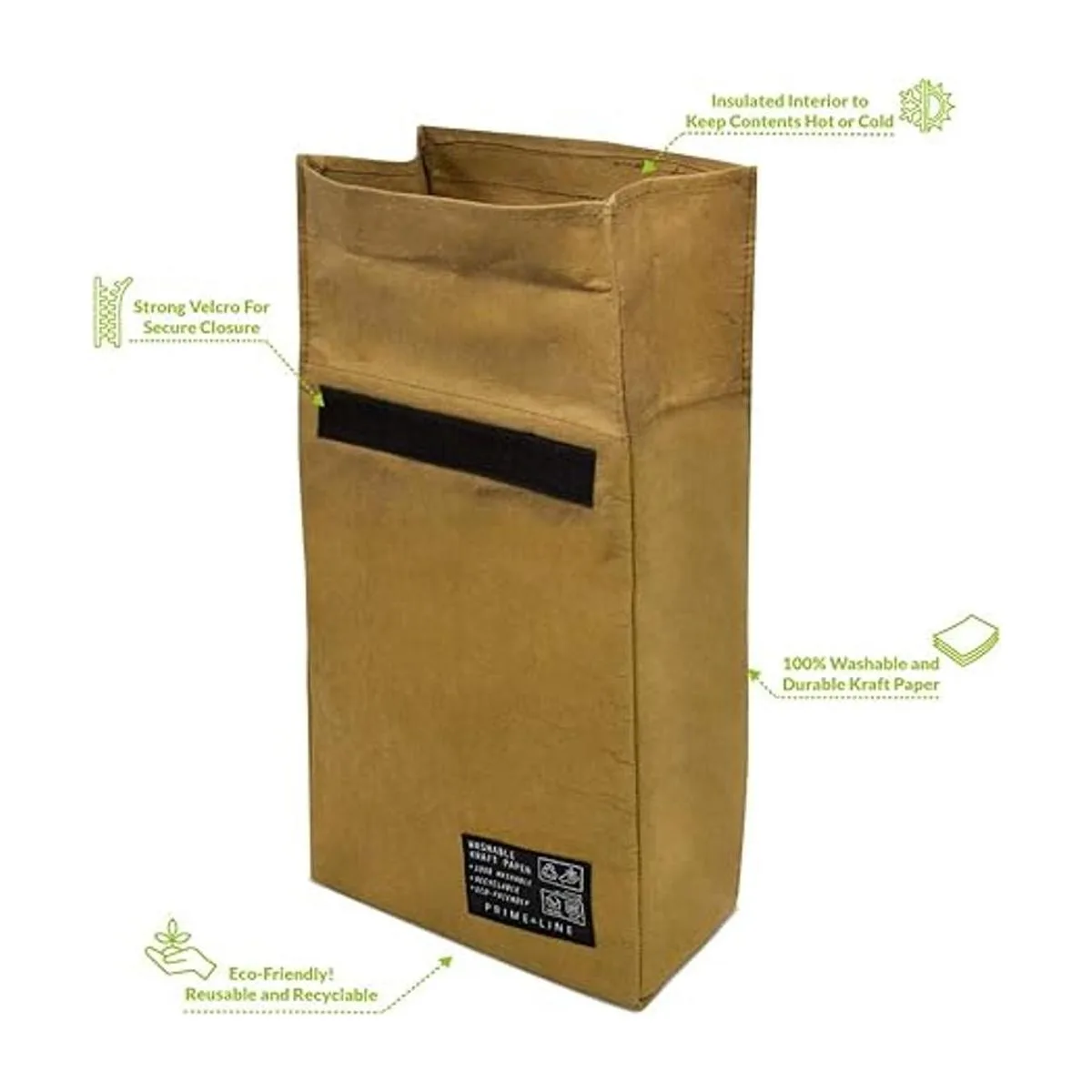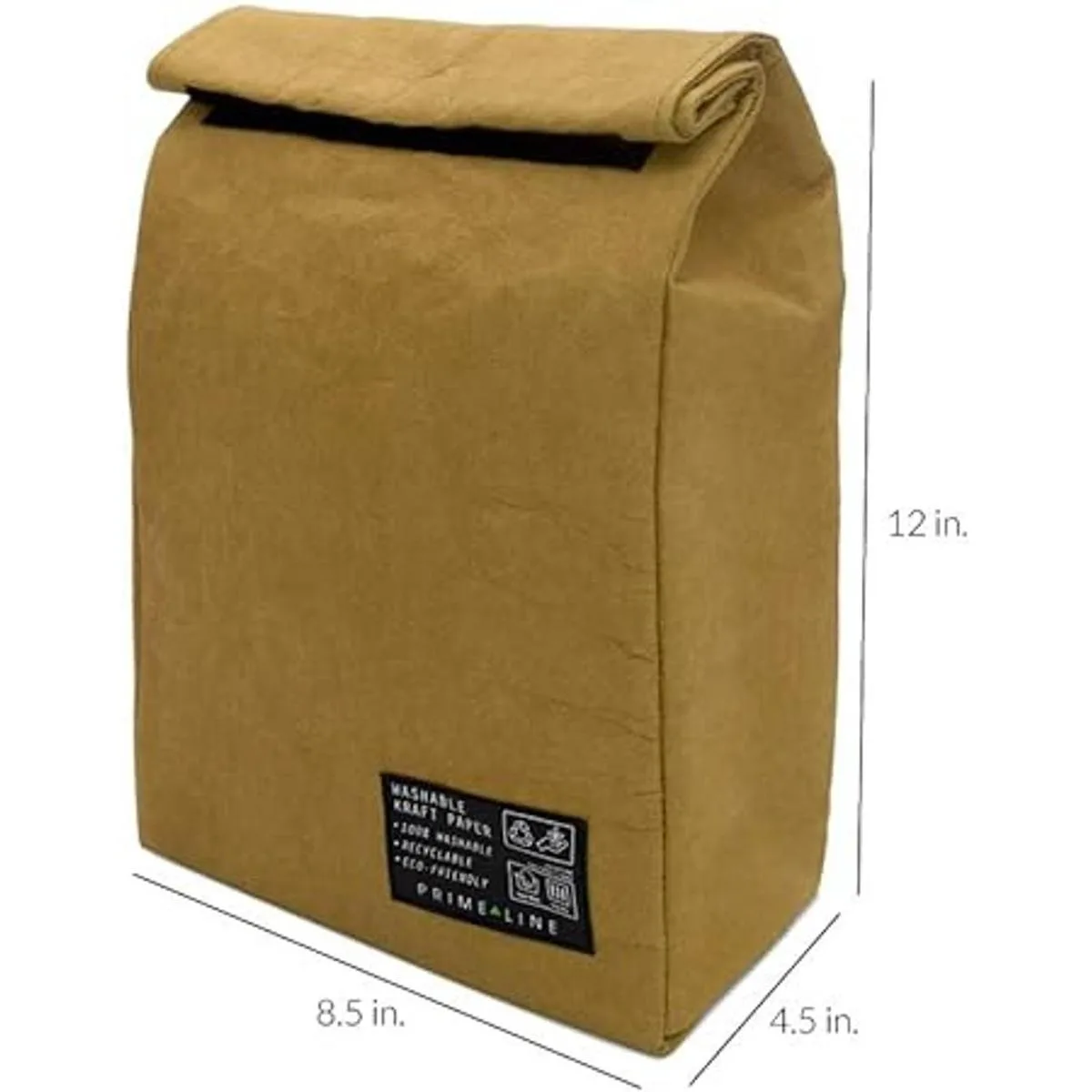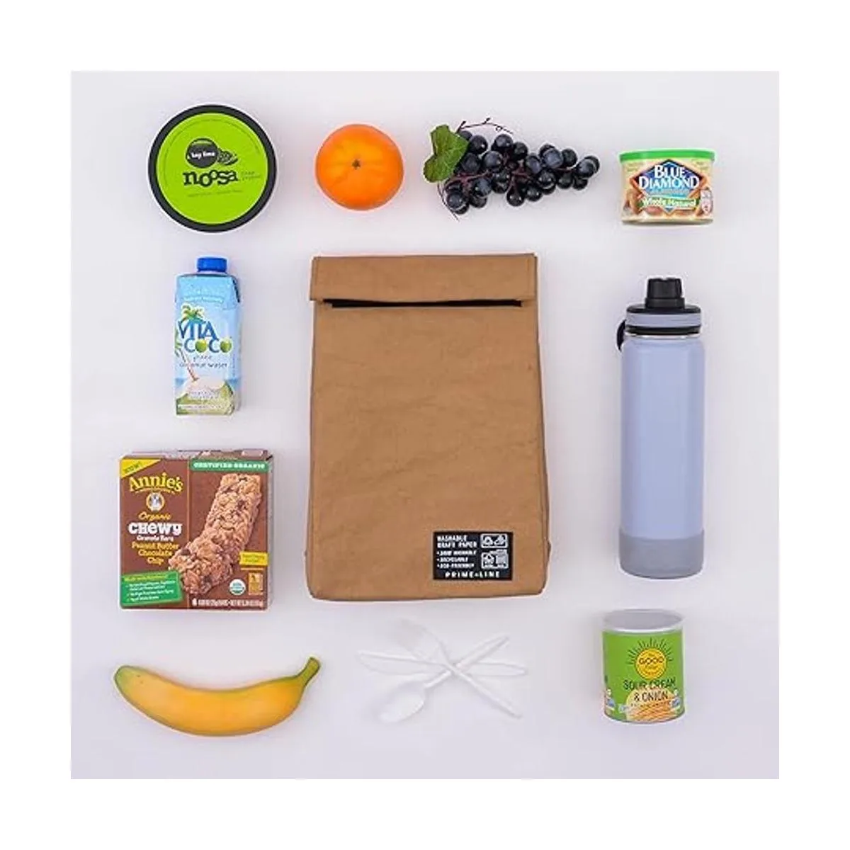 Bolsas de almuerzo sin complicaciones: hechas de material kraft lavable de alta calidad, estas bolsas son fuertes y resistentes al agua con un interior aislado. El material lavable en las bolsas repele el agua y evita las manchas, manteniendo tu almuerzo seguro y seco.