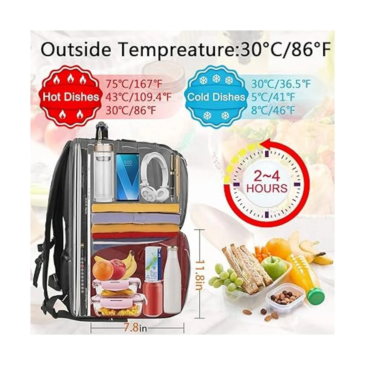 Función de refrigeración aislada y a prueba de fugas: nuestra mochila de almuerzo no solo mantiene la comida caliente, sino que también mantiene las bebidas frías durante aproximadamente 24 horas. La capa de aislamiento de alta calidad del compartimento de la lonchera mantiene la comida fresca y caliente, lo que hace que sea fácil de limpiar y almacenar alimentos. La mochila térmica de viaje es adecuada para la escuela, oficina, picnic, playa, viajes, exteriores e interiores. Dimensiones del compartimento refrigerador: 11.8 x 7.8 x 7.8 pulgadas