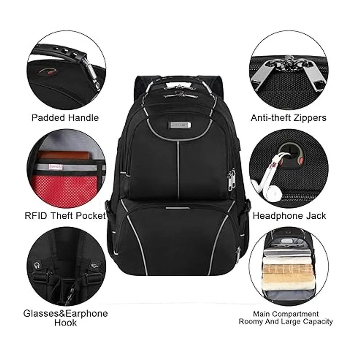Gran capacidad y puerto de carga USB: 2 compartimentos grandes que proporcionan una excelente protección para 2 computadoras portátiles y tabletas. Compartimento principal más grande para 2 a 3 días de ropa de viaje. Muchos bolsillos ocultos pueden acomodar un montón de accesorios de viaje, cuaderno, artículos de aseo personal, bolsillo lateral con cremallera para un fácil acceso esenciales, puerto USB externo con cable de carga integrado que ofrece una carga cómoda de tu teléfono celular y otros dispositivos electrónicos. Un agujero para auriculares exterior proporciona un fácil acceso al uso de auriculares.