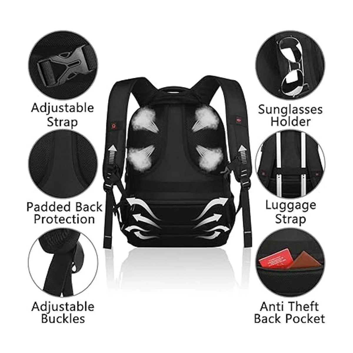 Correa de equipaje trasera y correa de pecho: diseño de ventilación en forma de U trasero que ayuda a la convección de aire. Correas de hombro ajustables con acolchado que ayudan a aliviar el estrés de tu hombro. Una correa de equipaje permite que la mochila se ajuste en el equipaje/maleta, se deslice sobre el tubo vertical del asa del equipaje para un transporte más fácil; la correa ajustable del pecho lleva las correas de hombro más apretadas al pecho. Además, la mochila para estudiantes con un asa resistente con cable de acero en la parte superior para llevar.