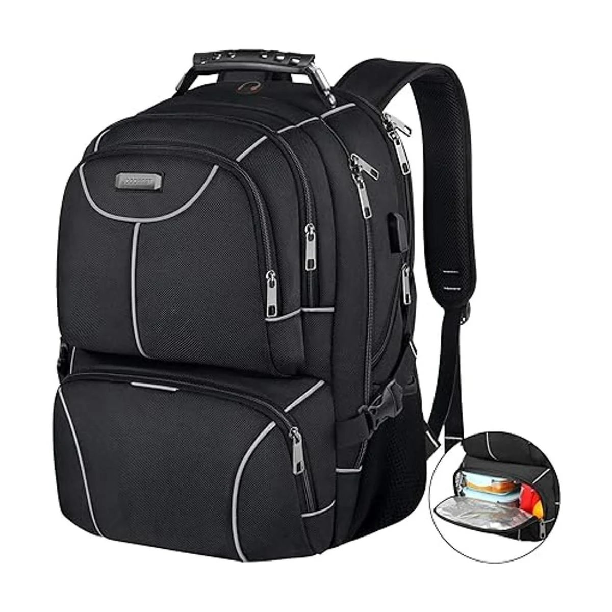 Bolsa de almuerzo, mochila térmica térmica térmica, mochila extra grande para laptop de viaje, compatible con TSA, RFID duradera, para computadora, universidad, escuela, con puerto USB, para mujeres y hombres, se adapta a laptop de 17.3 pulgadas
