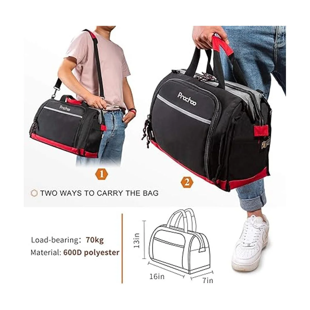 Bolsa de herramientas de boca ancha con 25 bolsillos bolsa de almacenamiento de 16 pulgadas con correa de hombro ajustable negrorojo