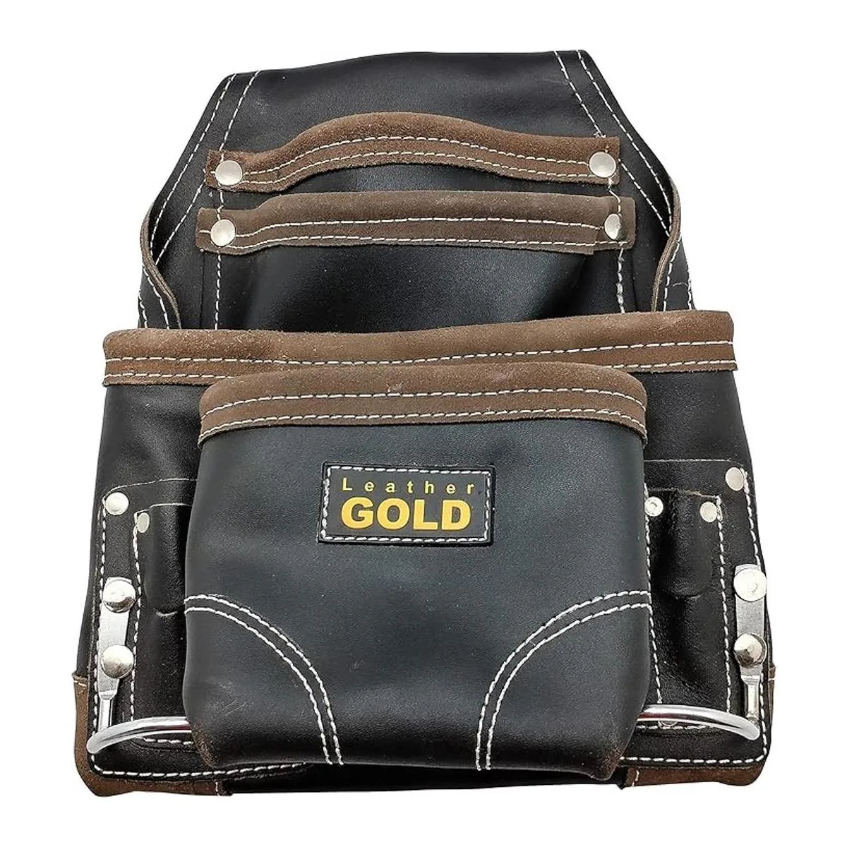 Bolsa de herramientas de cuero dorado resistente Carpenters Tool Pouch 3150, negro, aceite curtido 10 bolsillos, 2 soportes para martillo, costuras reforzadas