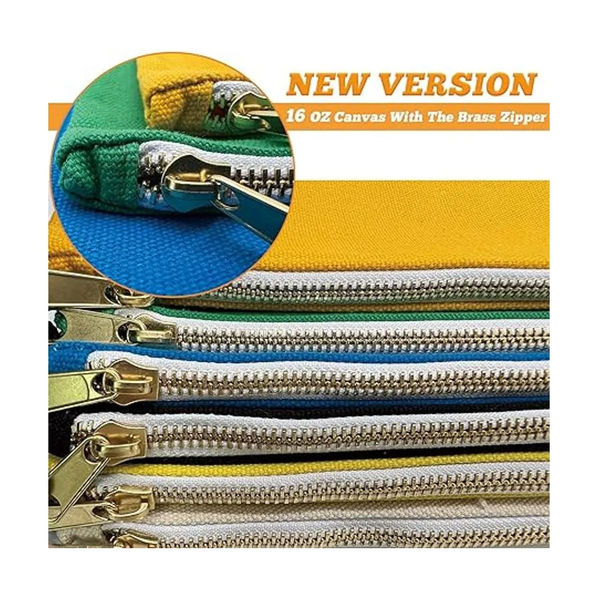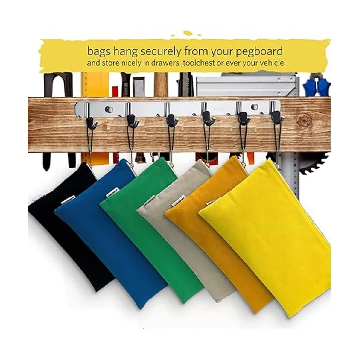 Bolsa de herramientas de lona con cremallera, paquete de 6 bolsas de herramientas resistentes, organizador de almacenamiento multiusos con cremalleras de metal confiables, 12.5 x 7 pulgadas, olivanaranjaazulamarilloblanconegro
