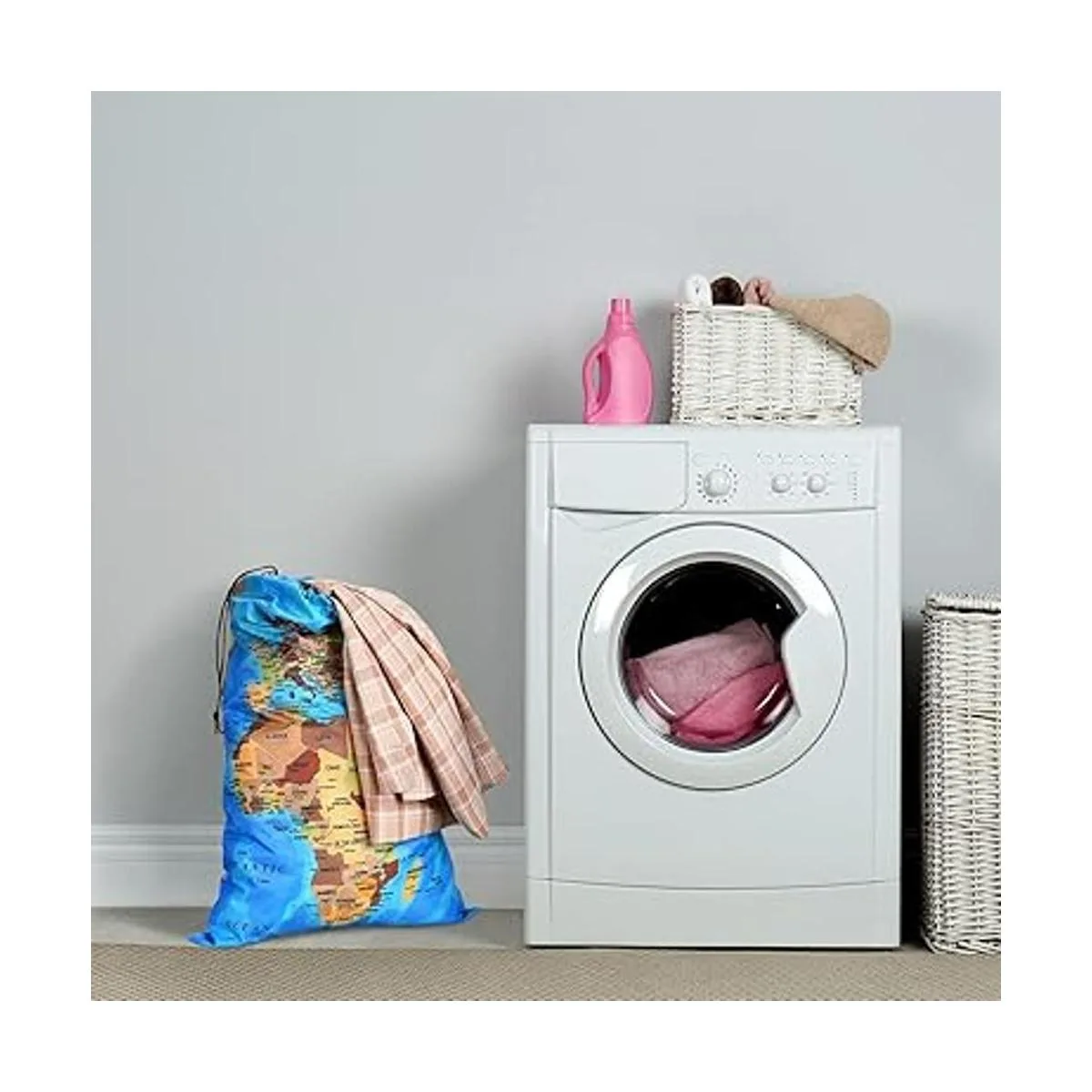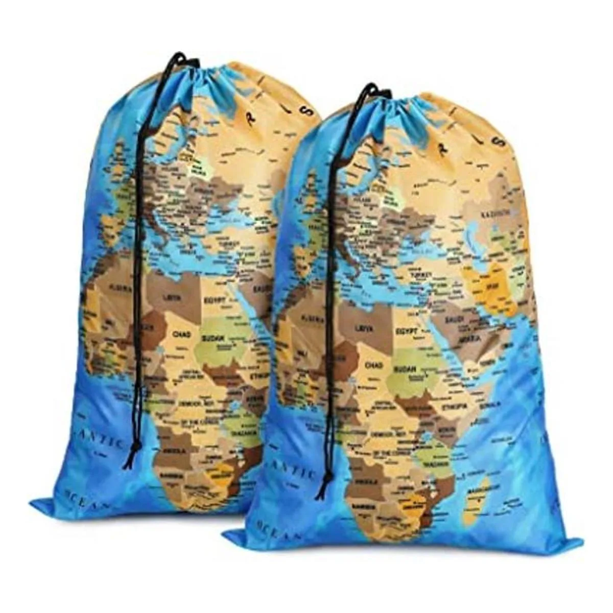 Bolsa de lavandería de 2 piezas de 22 x 16 pulgadas con mapa del mundo, bolsas de lavandería de viaje, bolsa organizadora de ropa sucia para viajes