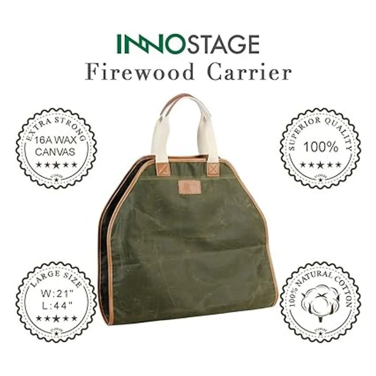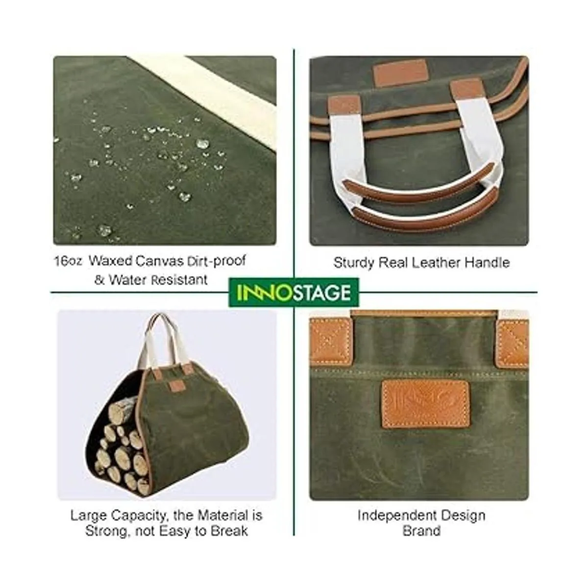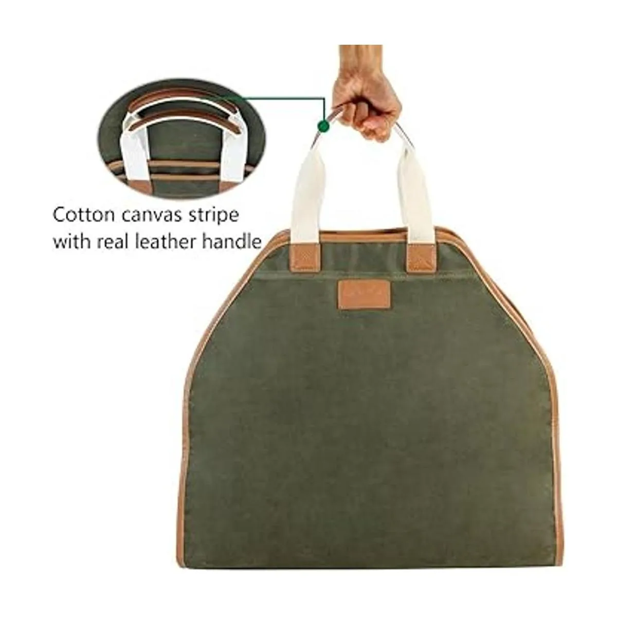 Diseño práctico: asas de cuero real reforzadas con costuras en cruz, atemporales y sólidas; el diseño de paredes sin extremos funciona muy bien para llevar una buena cantidad de madera con cualquier tamaño, se puede enrollar, fácil de almacenar cuando no está en uso.
