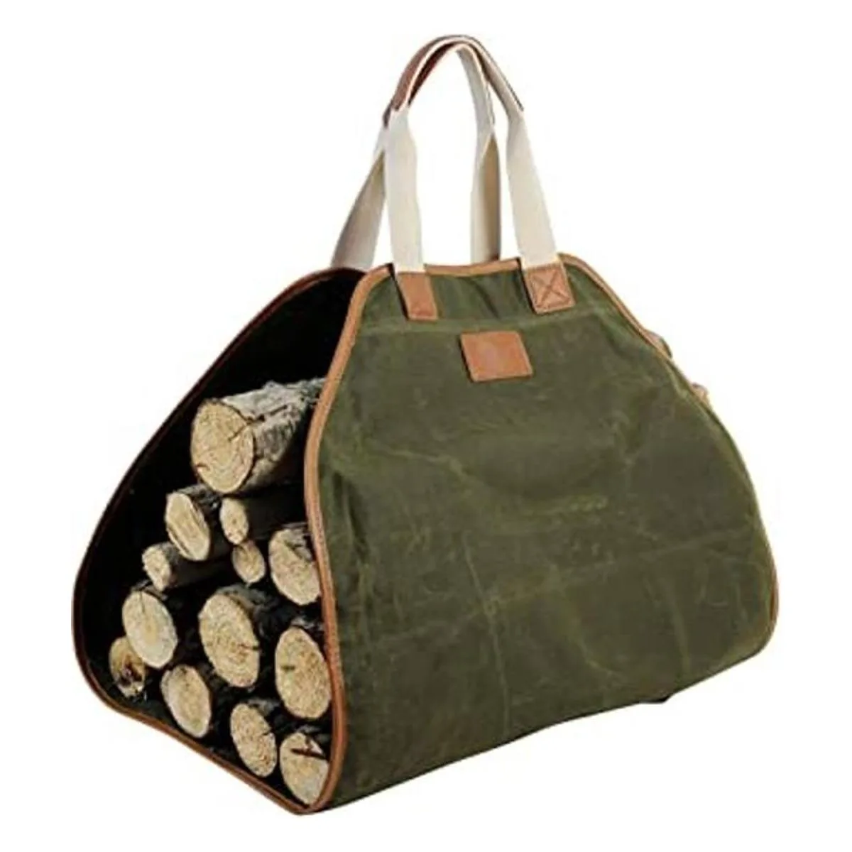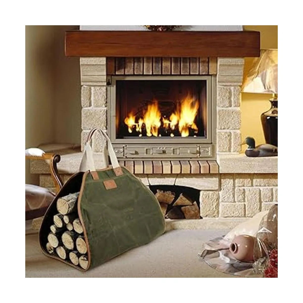 Bolsa de transporte de troncos de lona, bolsa de madera encerada duradera, accesorios de estufa de chimenea, soporte de leña extra grande con asas para campamento, los mejores regalos