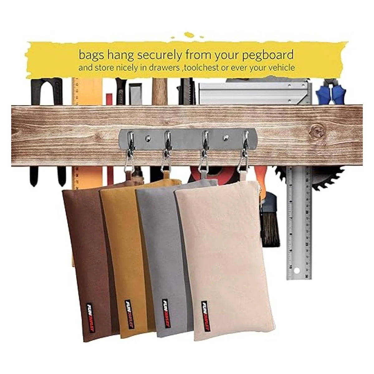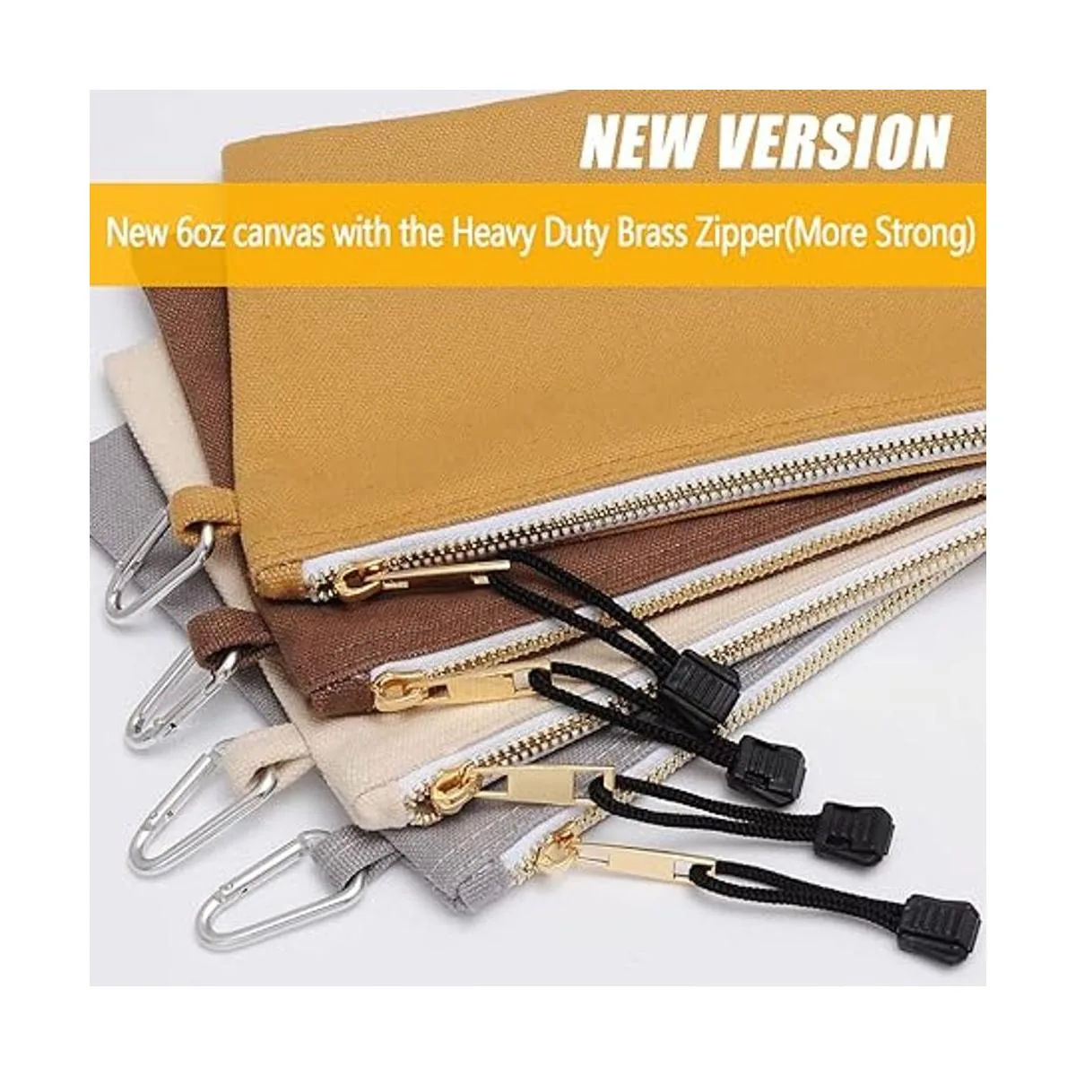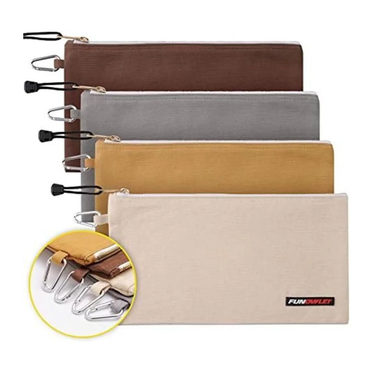 Bolsa de utilidad, bolsas de lona con cremallera, bolsa de herramientas resistente con mosquetón, organizador de almacenamiento multiusos con clip en blanco, gris, marrón, paquete de 4