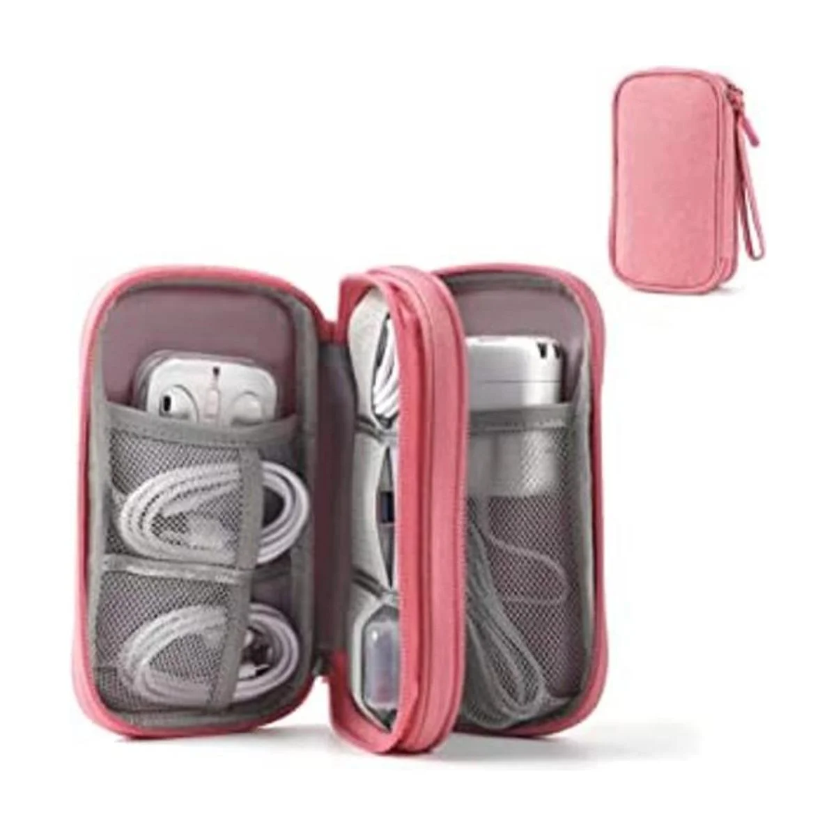 Bolsa organizadora electrónica, 3 compartimentos, bolsa organizadora de cables de viaje, bolsa portátil para teléfono electrónico, accesorios multifuncionales para cable, cable, cargador, disco duro, auriculares rosa