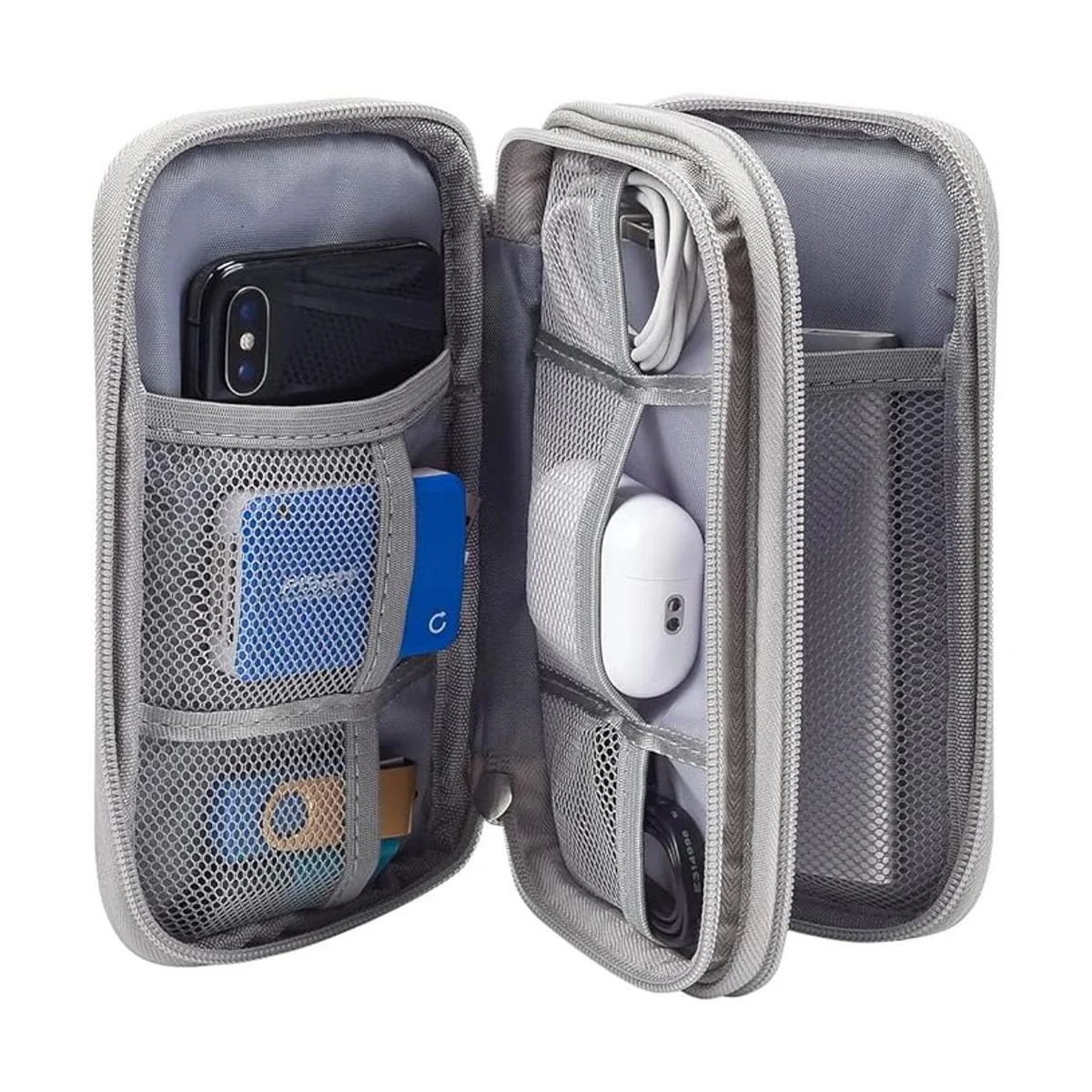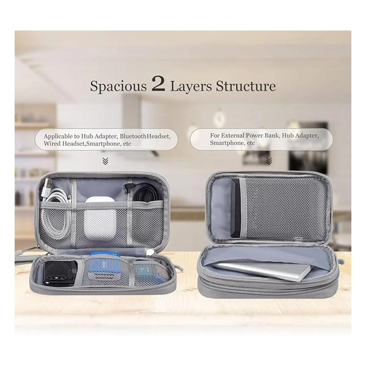 Diseño de 2 compartimentos: la bolsa viene con 2 compartimentos, diseñada para almacenar dispositivos electrónicos, como banco de energía, disco duro externo, tarjeta de memoria SD, cables, auriculares, adaptador de conector, también es bueno para artículos de papelería de niños y estudiantes, como bolígrafo, lápiz, resaltador, bolígrafo de gel y borrador.