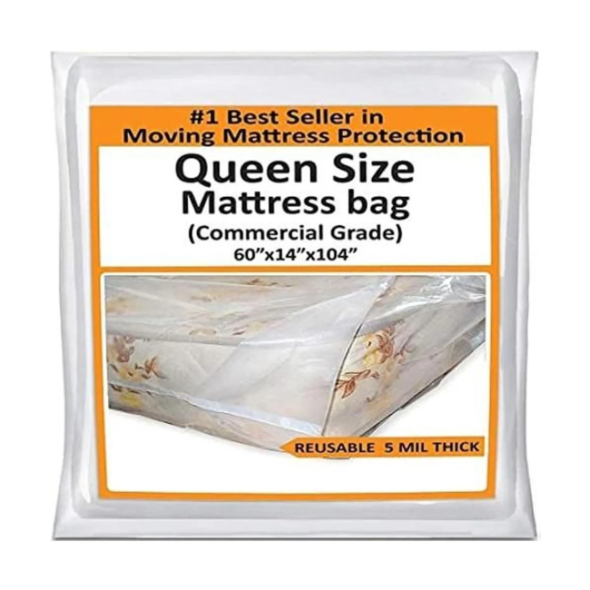 Bolsa para colchón de dos plazas para mudanza cubierta protectora de plástico resistente, espesor 5 Mil solución de almacenamiento reutilizable