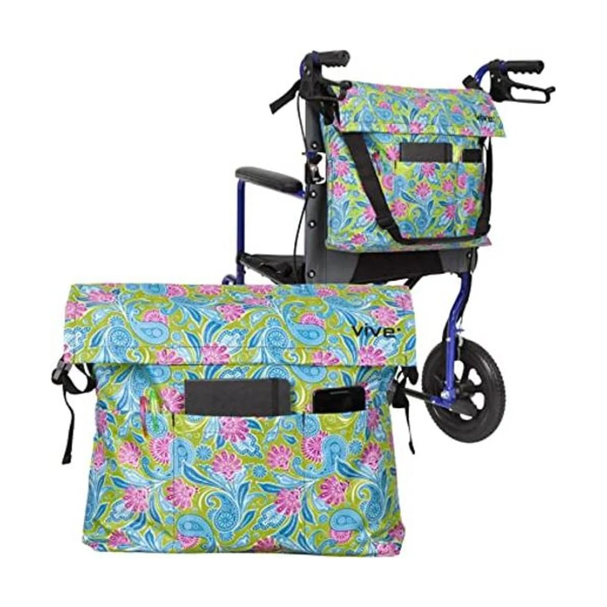 LIGHTWEIGHT WATERPROOF AND MACHINE WASHABLE: Constructed with a durable, lightweight nylon material, the wheelchair bag is waterproof to keep contents safe and dry. For best results, machine wash in cold water and allow bag to air dry.