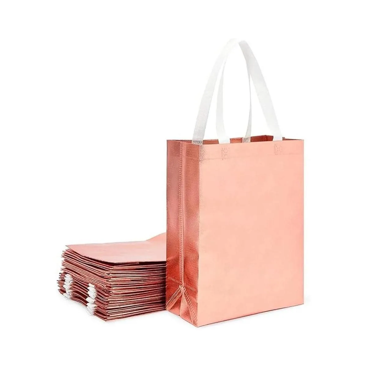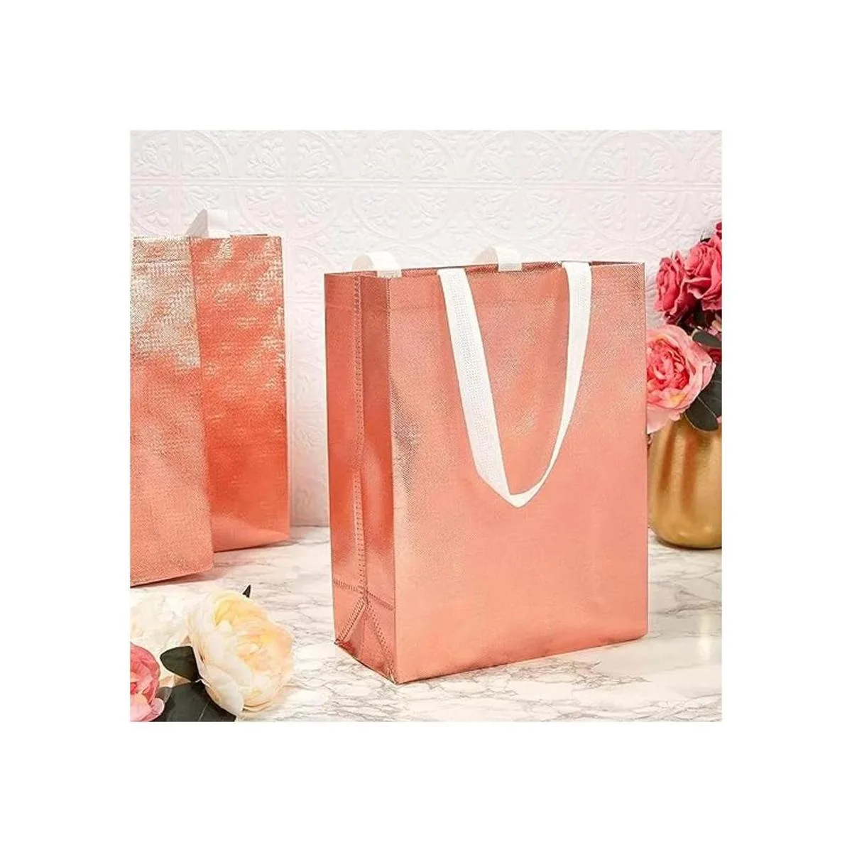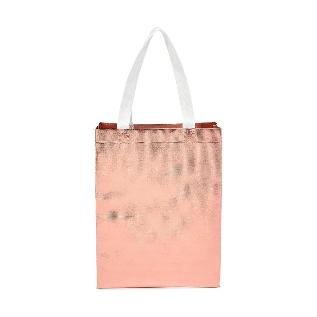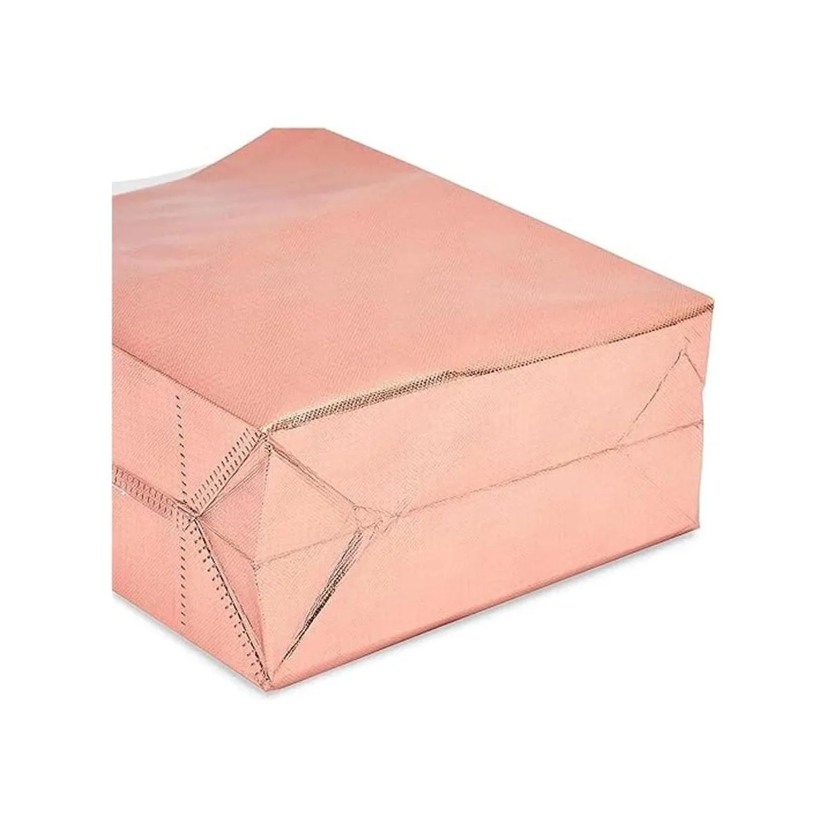Bolsas de oro rosa. Utiliza estas versátiles bolsas medianas para guardar ropa, joyas, alimentos, libros mientras estás de compras o para almacenar muestras gratuitas, o artículos promocionales en un mercado de agricultores o ferias comerciales. Las cómodas asas garantizan un uso cómodo durante largos períodos de tiempo