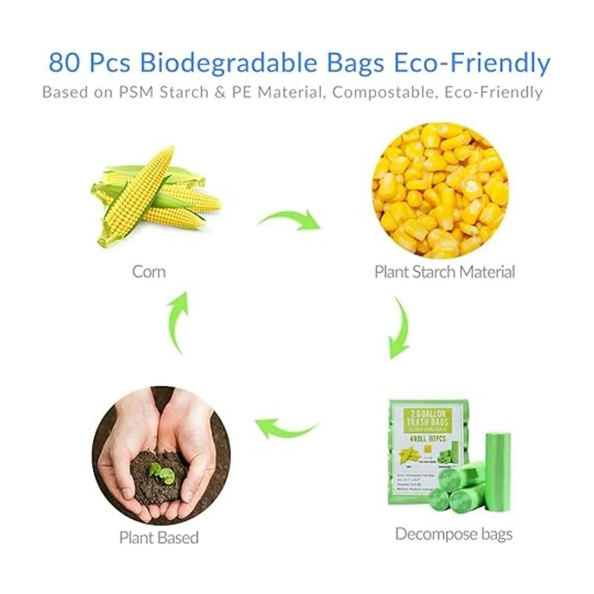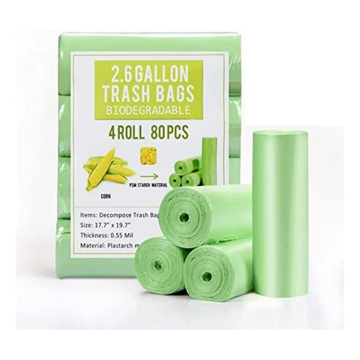 Bolsas de basura pequeñas de 2.6 galones biodegradables para baño, oficina, reciclaje, ecológicas, con fuerte resistencia a las roturas y fugas, verde, 80 unidades