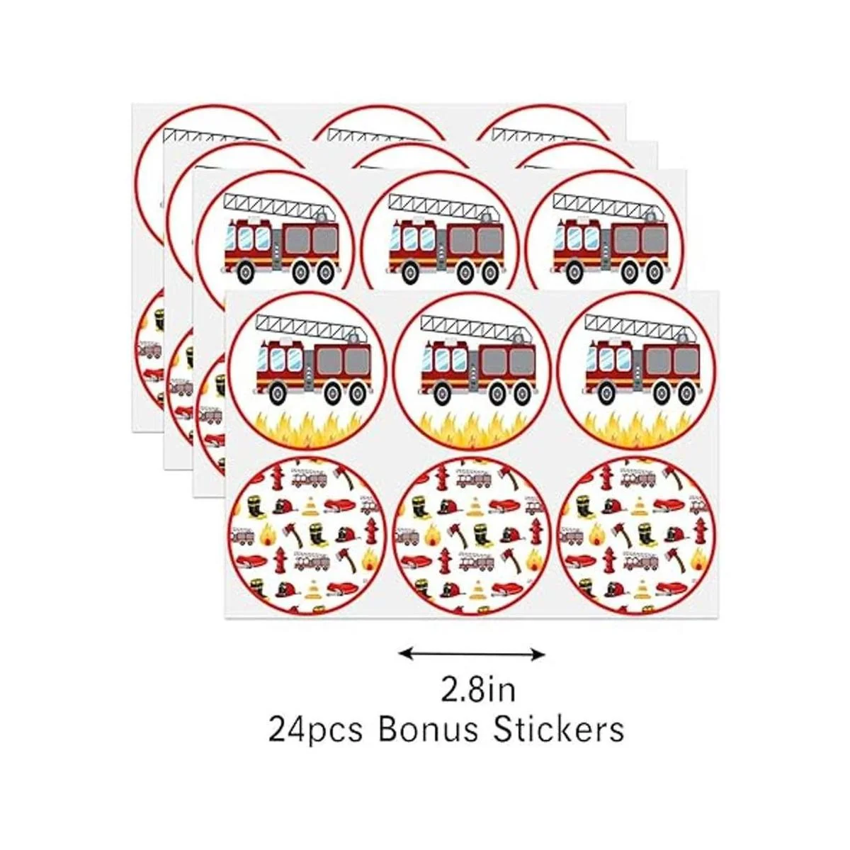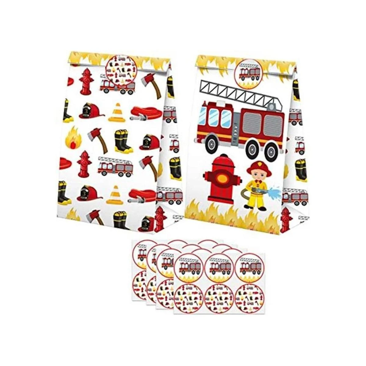 El paquete incluye: 24 bolsas de fiesta de bomberos 24 pegatinas de fiesta de bomberos.
