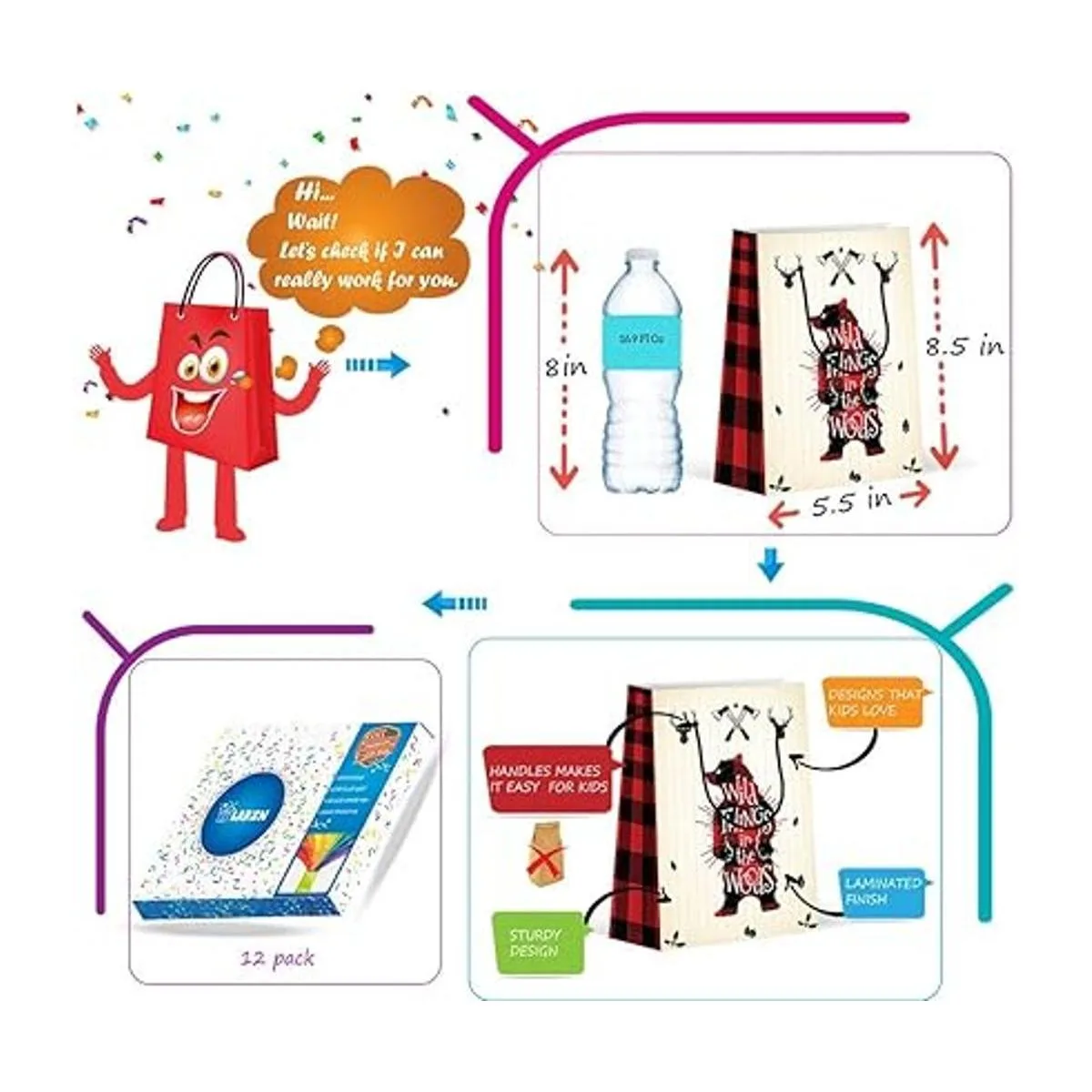 Bolsas de fiesta premium Lumberjack, bolsas de regalo, bolsas de regalo, bolsas de regalo, regalos de fiesta, suministros de fiesta, decoraciones, 12 unidades