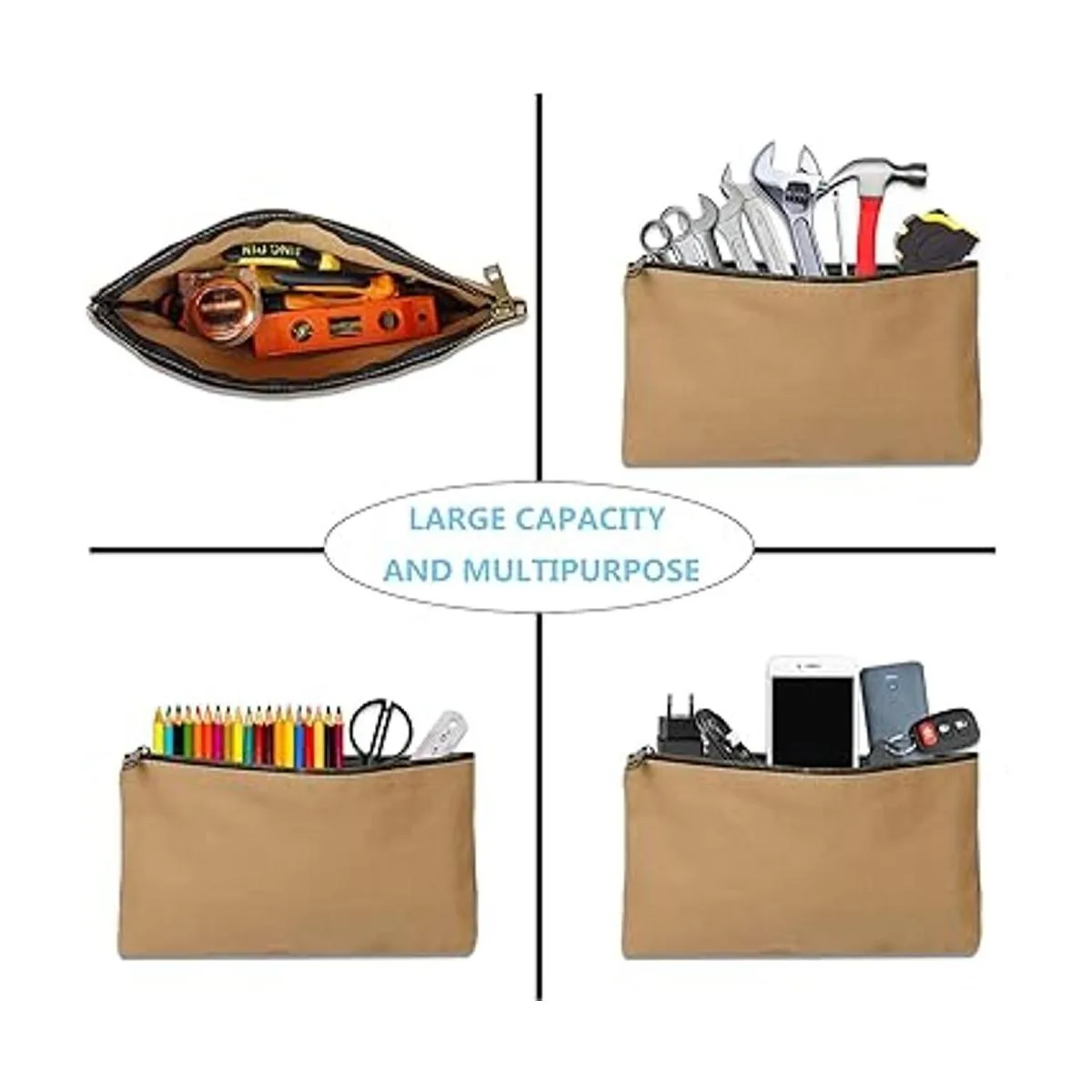 Bolsas de lona para herramientas, muy resistente, de 16 onzas con cierre de metal Bolsas de almacenamiento inteligentes multituso a prueba de agua Juego de 4 organizadores para herramientas de uso general, ideales para encargados de mantenimiento, reparadores, carpinteros HGJ02US