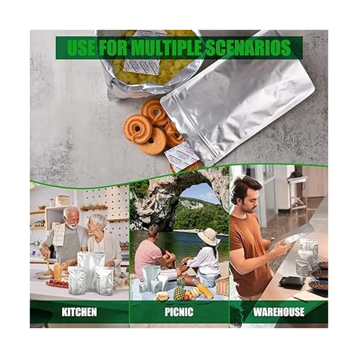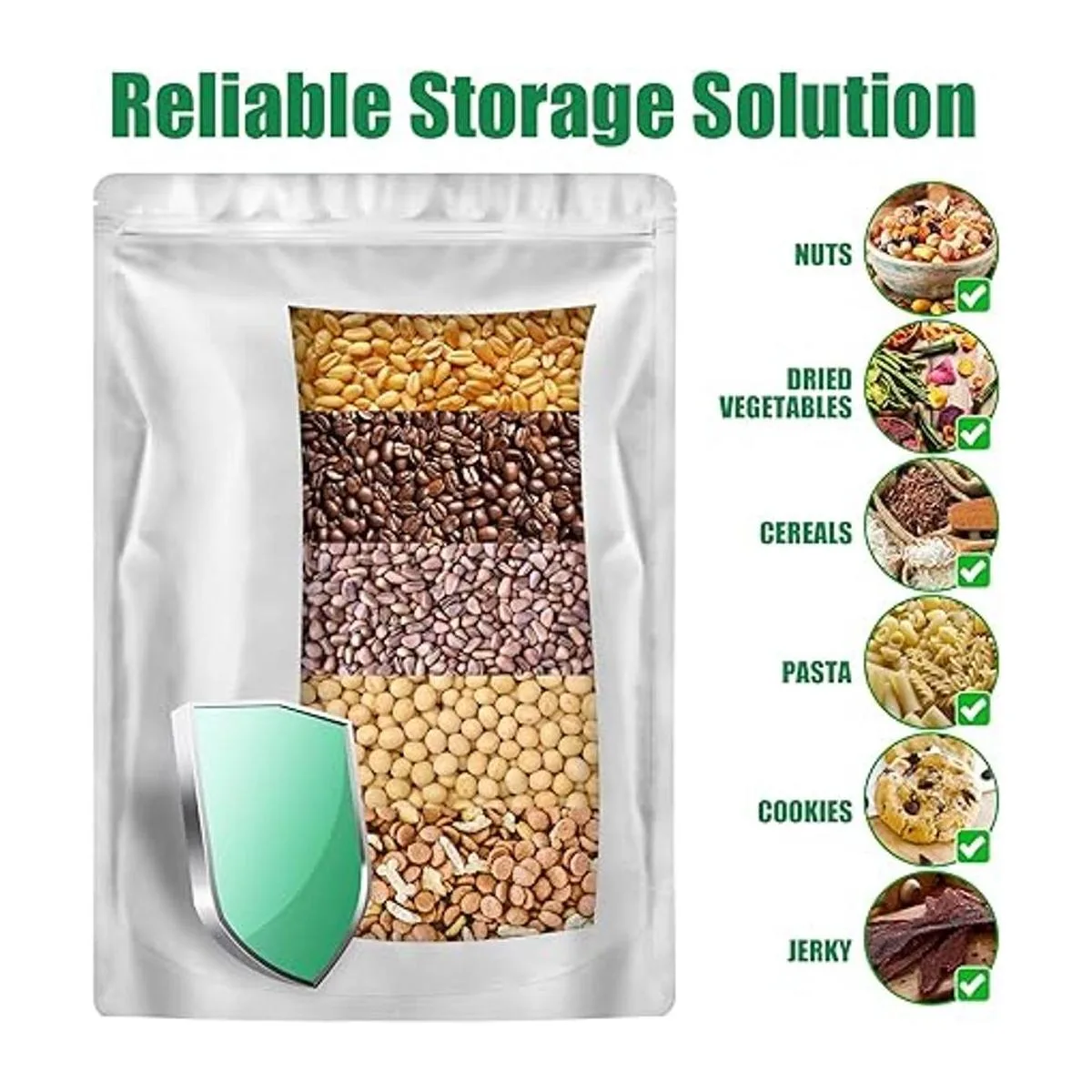 Amplio uso: adecuado para granos, arroz, avena, granos de café, frijoles, productos liofilizados, galletas, nueces, dulces, té, golosinas para perros, etc. Almacenamiento de alimentos de cocina.