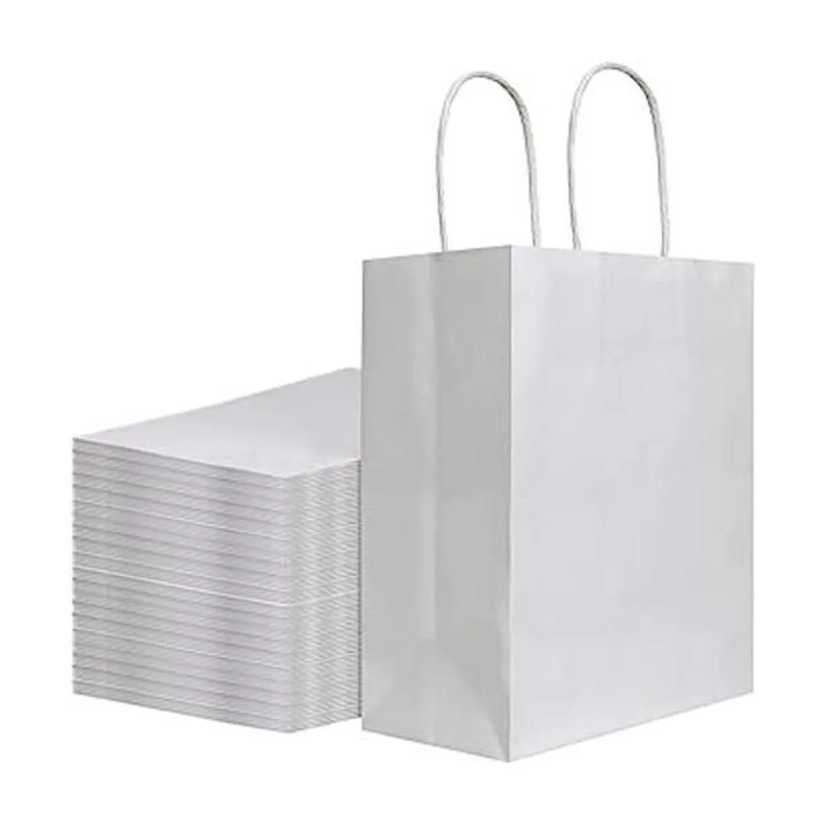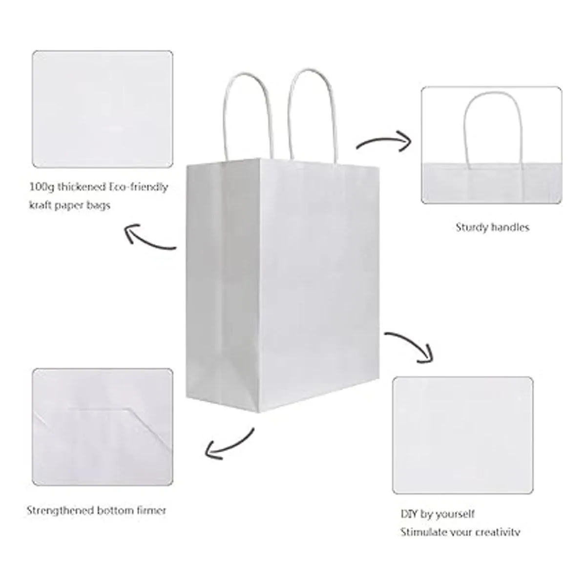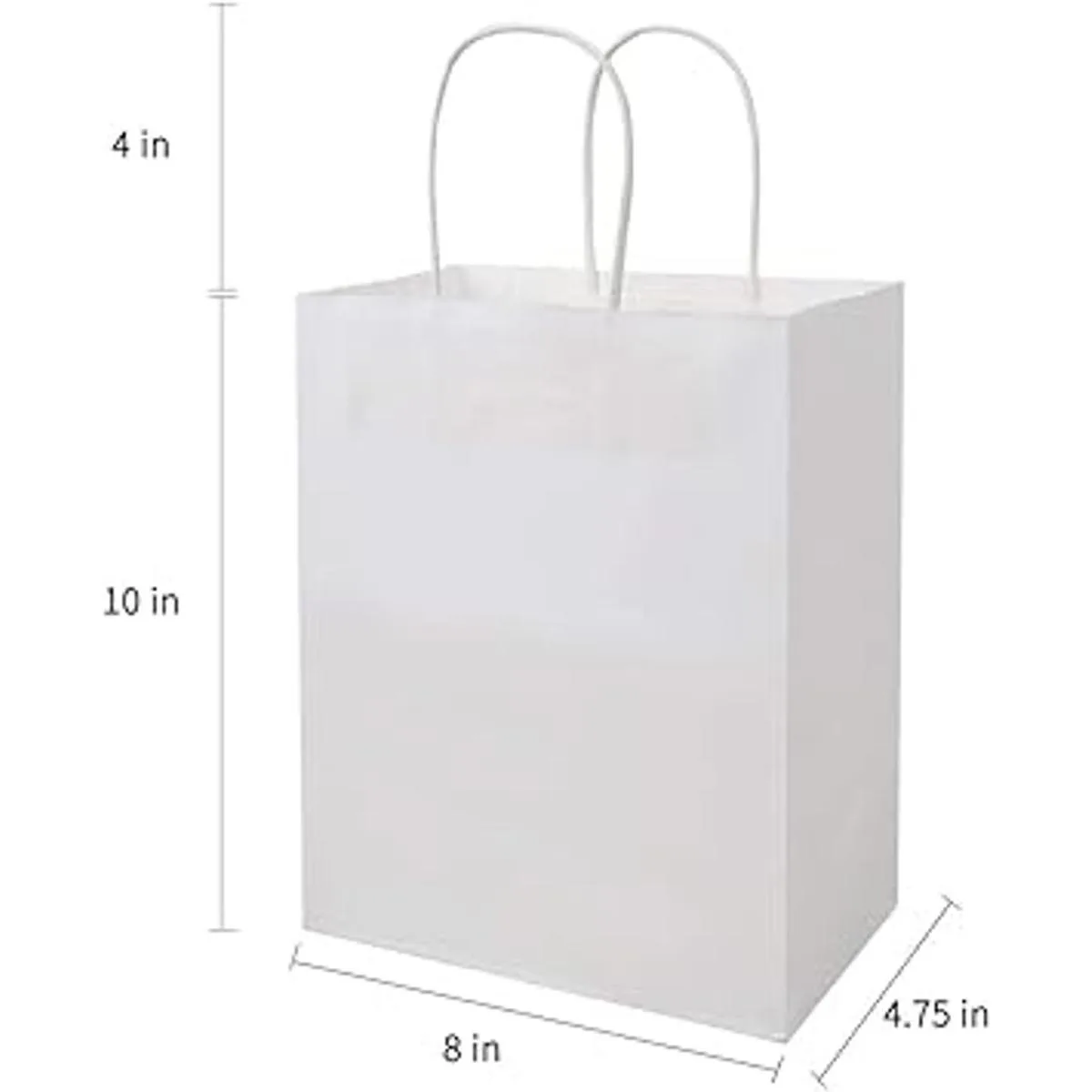 Bolsas de papel Kraft de color blanco mediano con asas a granel, bolsas de regalo Bagmad 8×4.75×10 in, bolsas de regalo para manualidades, compras al por menor