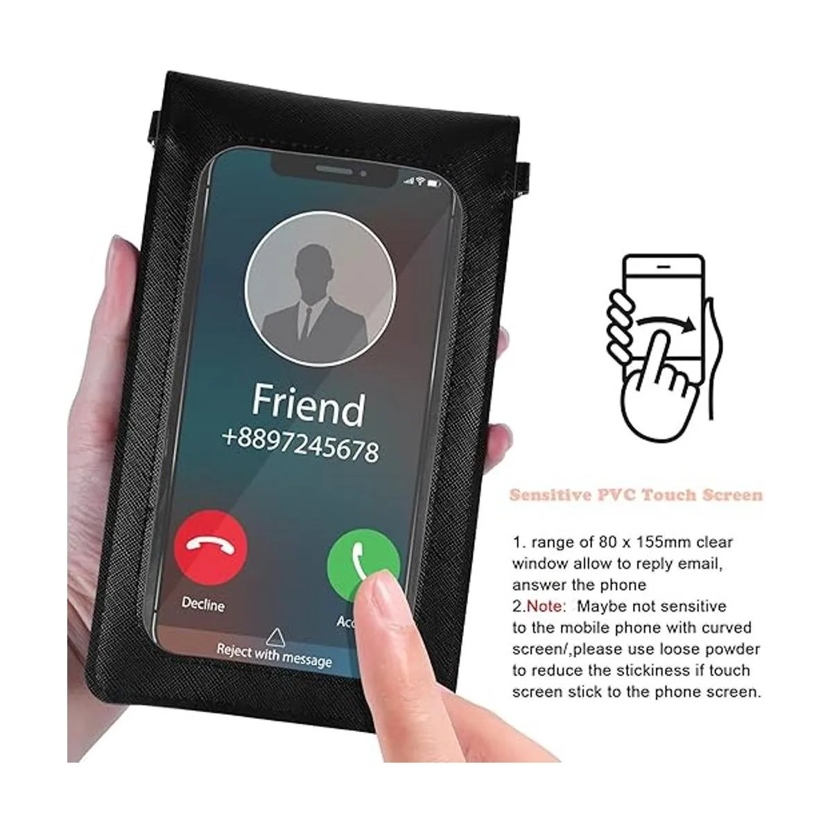 Bolso para teléfono con ventana de pantalla táctil: pequeño bolso para teléfono con pantalla táctil hecho de poliuretano respetuoso con el medio ambiente y pantalla de PVC transparente, funciona sin problemas, soporta vertical y horizontalmente, permite reproducir videos a mano o correo electrónico, resistente a los arañazos, a prueba de manchas, es conveniente para llevar cosas personales como teléfonos celulares, especialmente para madres ocupadas.