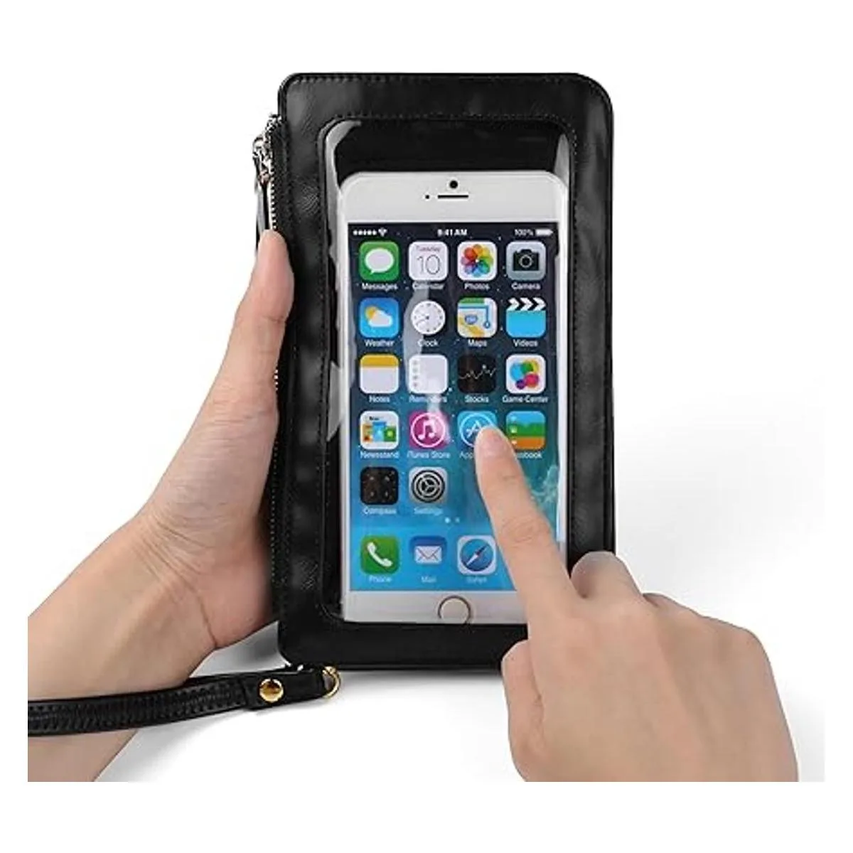 Correa de hombro ajustable libremente y diseño de correa de muñeca duradera para opciones de transporte convenientes. Se puede utilizar como una bolsa cruzada, bolsas de hombro, bolsa para teléfono celular, cartera, bolsillo para efectivo, monedero, bolso, bolso de mano, bolso de muñeca, funda de transporte. Ten en cuenta que la ventana de la pantalla táctil no es compatible con el desbloqueo de huellas dactilares