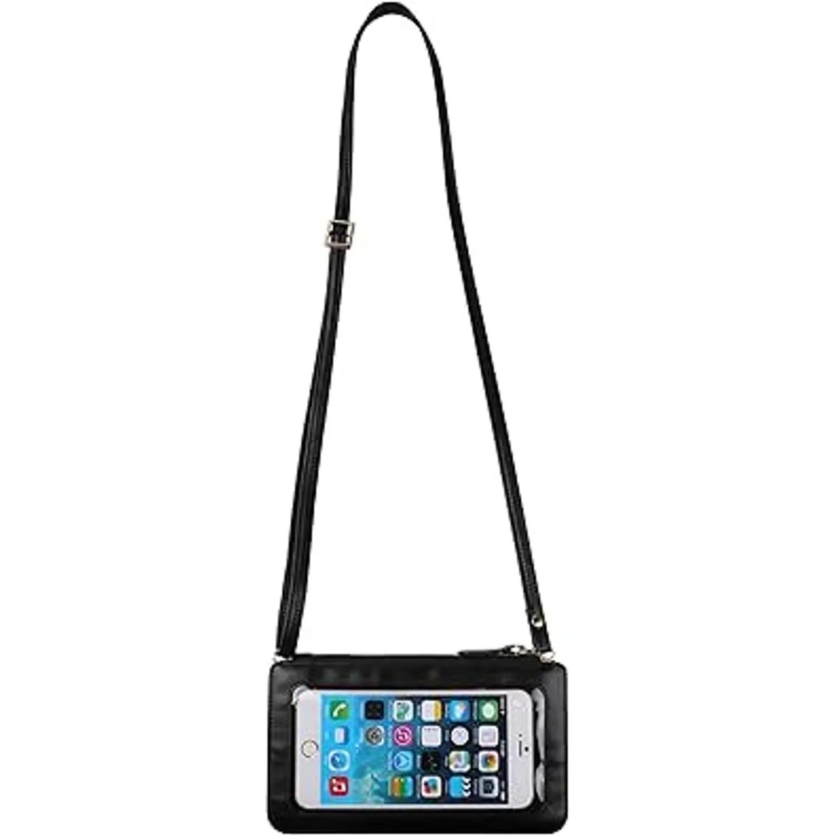 Con tres compartimentos separados con cierre de cremallera, incluyendo 1 bolsillo transparente para teléfono y 2 bolsillos adicionales, para guardar cosas personales como 2 teléfonos, llaves, identificación, tarjetas de crédito, dinero en efectivo, lápiz labial, lápiz labial y otros objetos pequeños. Dimensiones de la ventana transparente: 6.3 x 2.9 pulgadas