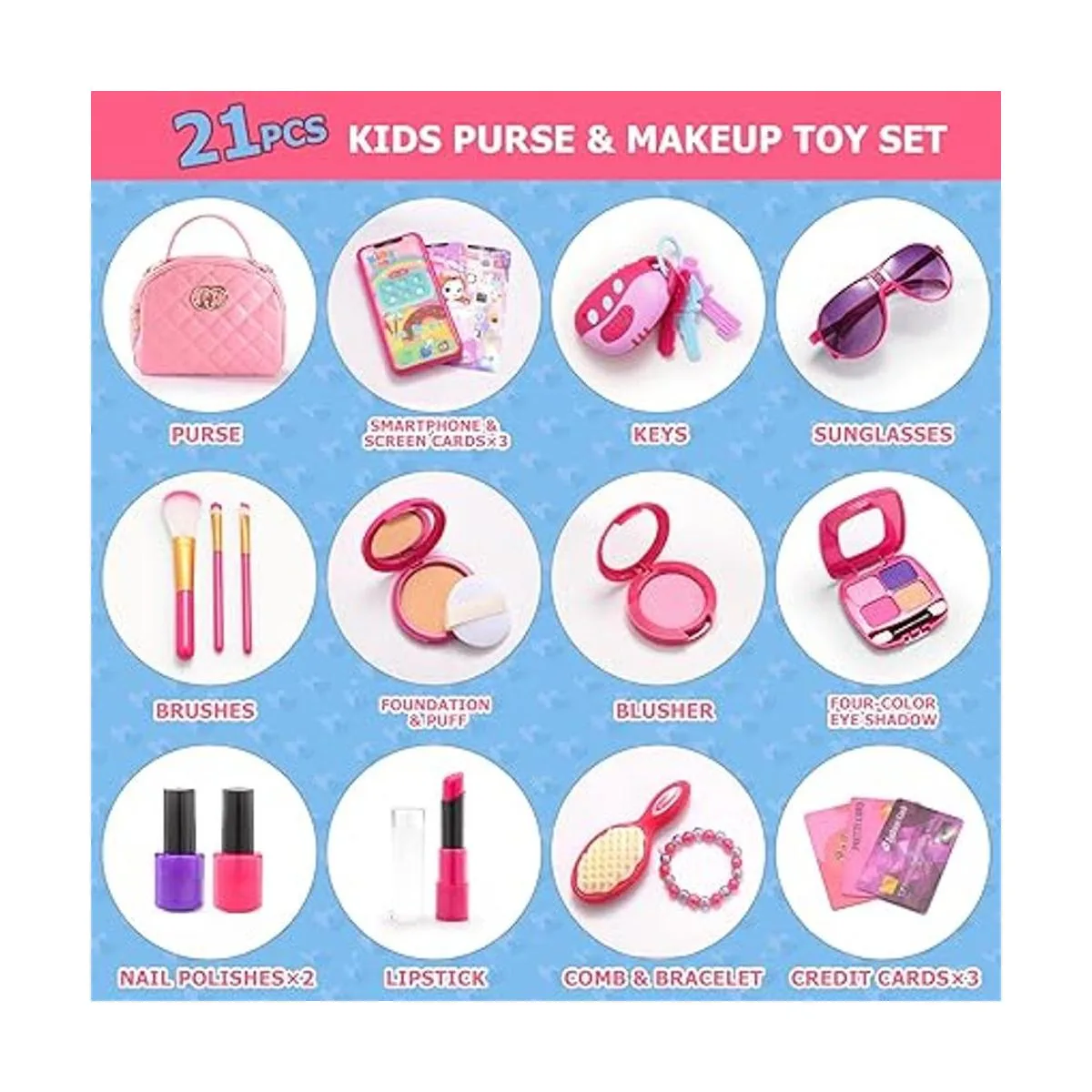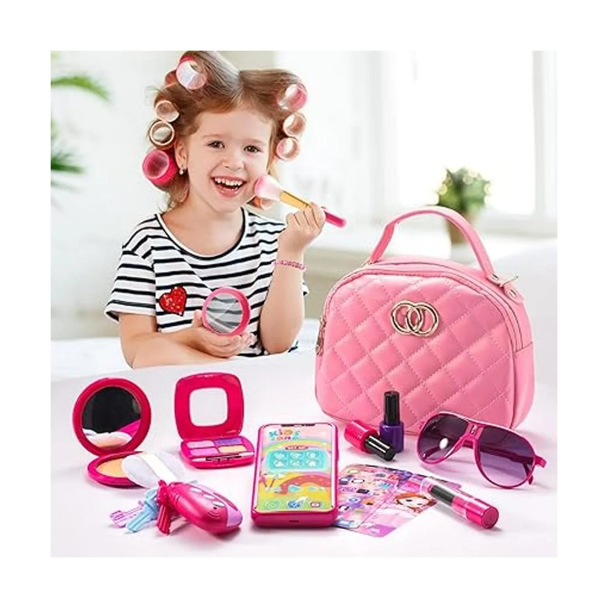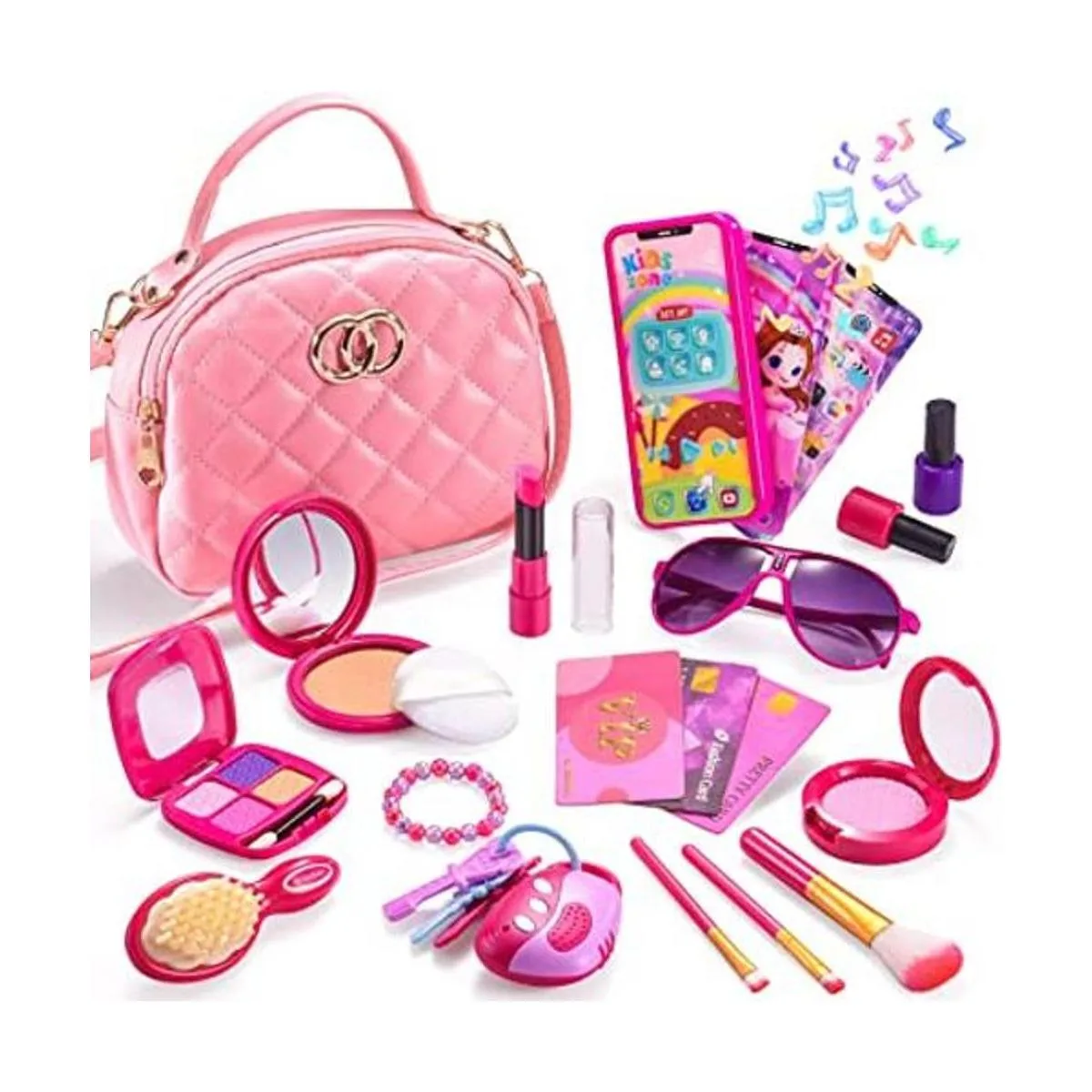 Bolso de juego de simulación: este es tanto un bolso como un bolso cruzado. Perfecto para juegos de rol de niñas en varias ocasiones. Este bolso permite a los niños pequeños organizar su kit de maquillaje muy bien y poner todos los accesorios de nuevo en el bolso de juguete después de jugar.