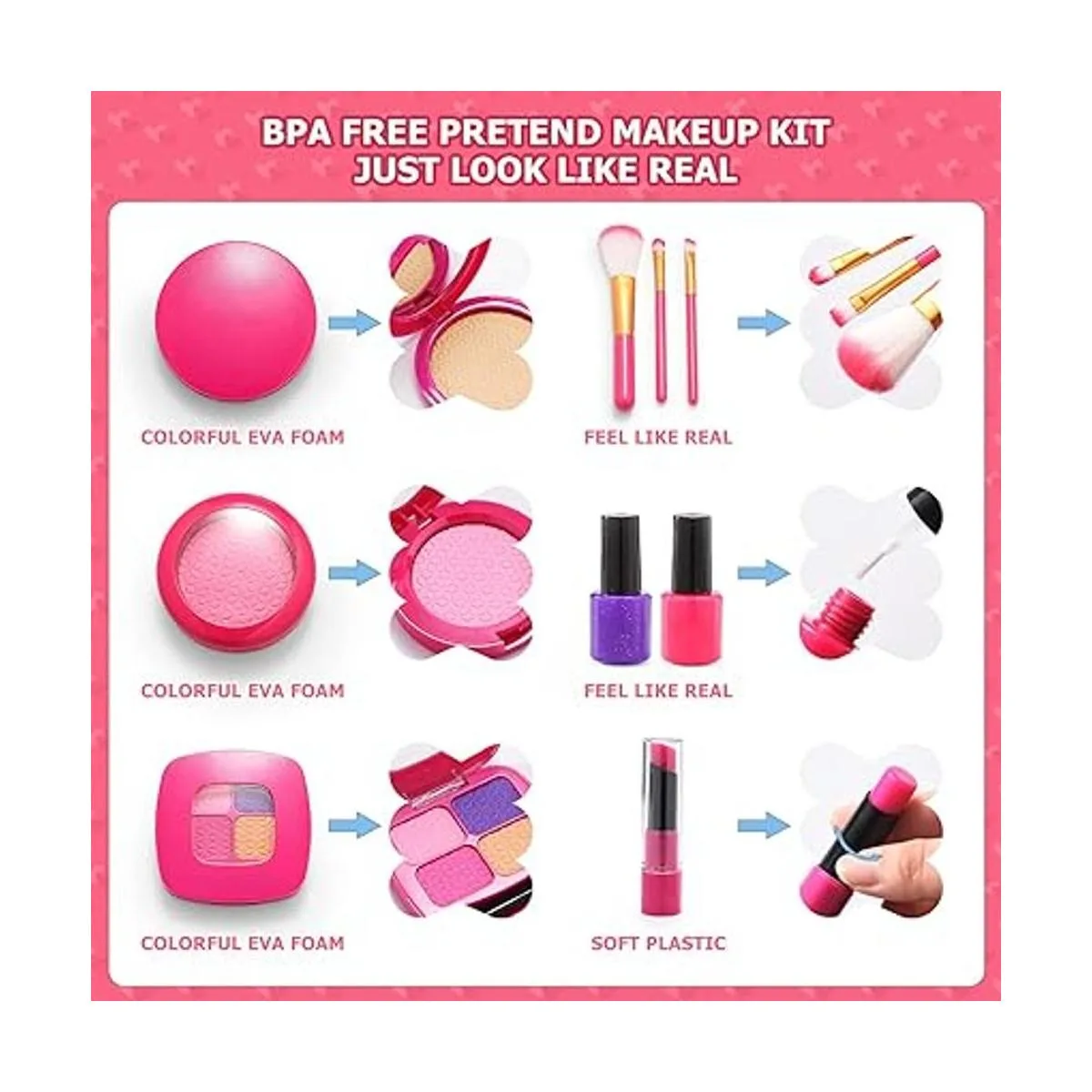 Idea de regalo para niñas : empaquetado en exquisitas cajas de regalo. Este juego de elegante bolso de juego y maquillaje satisfará el deseo de cada niña de ser una pequeña princesa bonita. Mantén a tus niñas ocupadas durante horas y fomenta los hábitos de aseo y remueve el juego creativo.