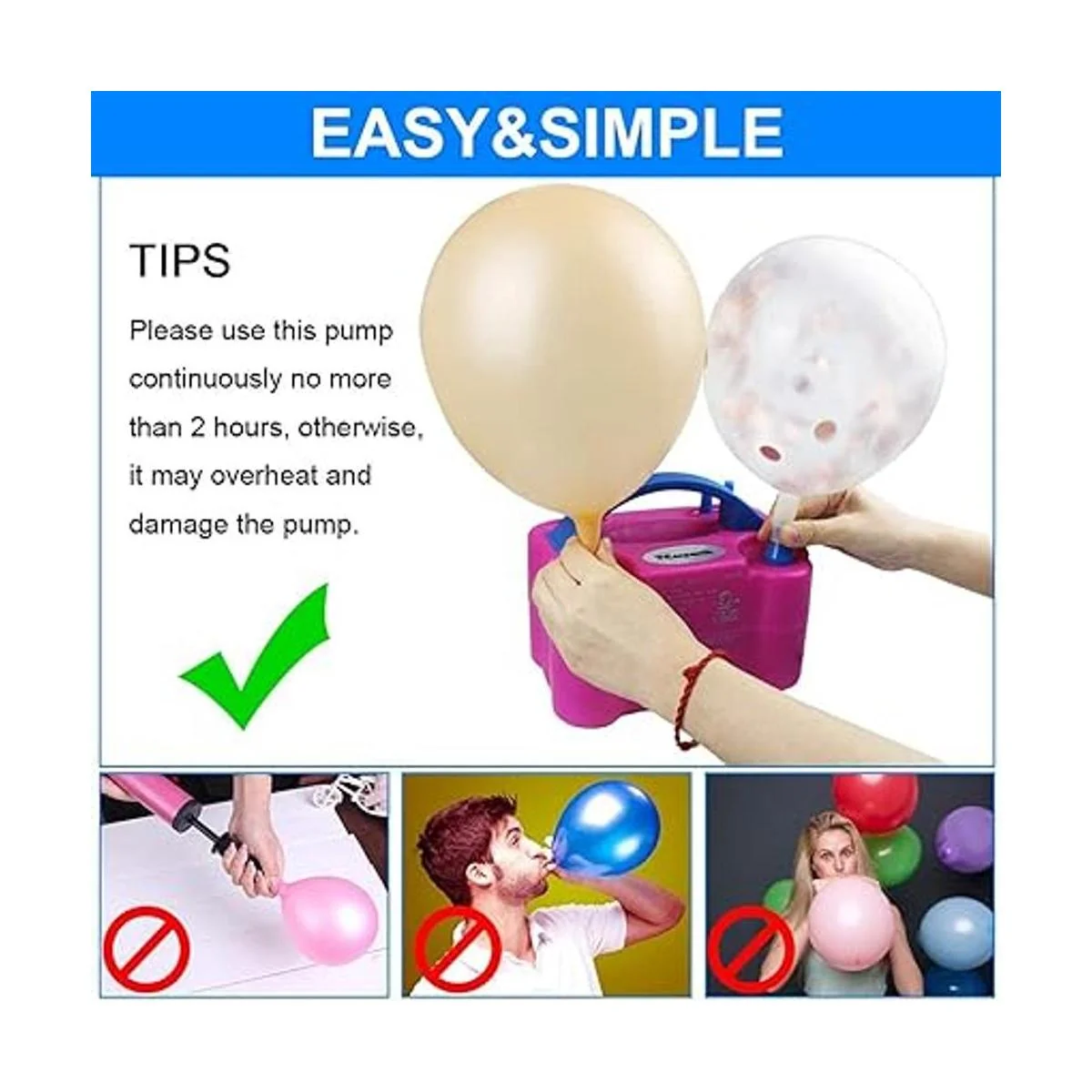 Modo de bombeo manual y automático: este inflado de globos de aire ofrece modos de bombeo manual presión y automático y se adapta a globos de látex y globos de papel de aluminio no es compatible con globos largos