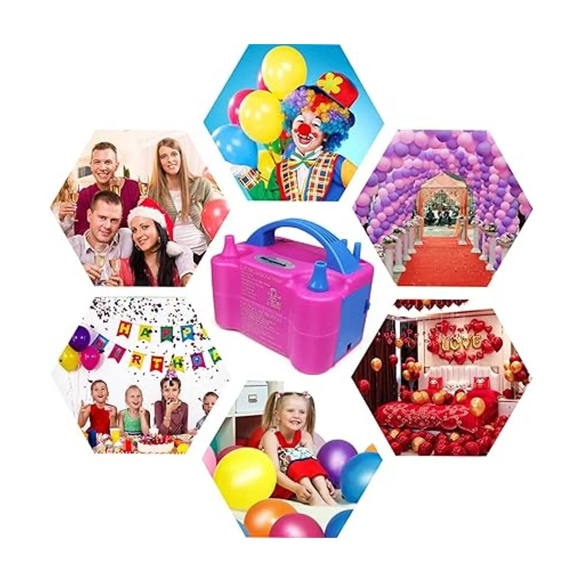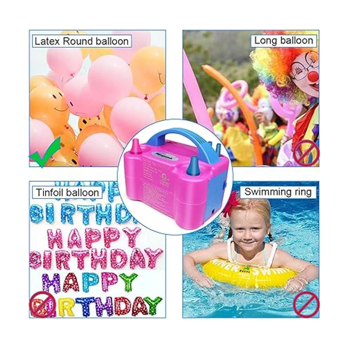 Bomba eléctrica portátil de globos: esta bomba de aire eléctrica de calidad inflará cientos de globos de látex decorativos en tiempo súper rápido. Seguro de usar: llena los globos con aire, no de helio o hidrógeno que son potencialmente peligrosos
