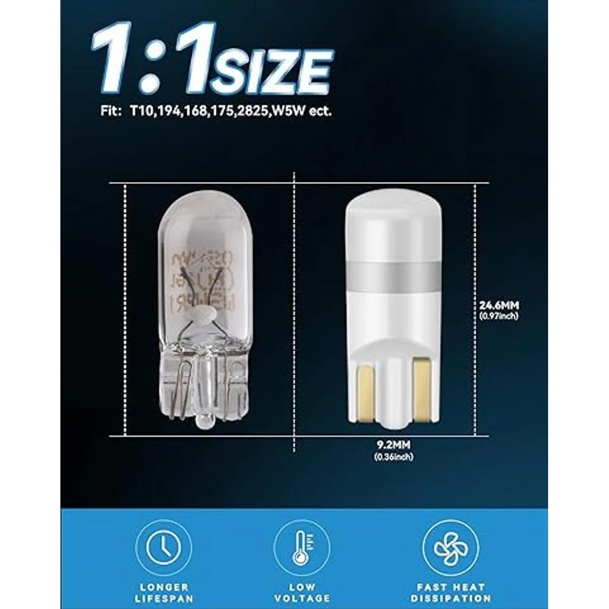 Amplia aplicación: las bombillas LED de base de cuña 193 T3 1/4 reemplazan las bombillas originales estilo filamento en placas de dirección iluminadas, bombillas LED de dirección, bombillas de señal de dirección, iluminación de paisaje, iluminación de cubierta de iluminación de casa, iluminación de gabinete, máquina de coser y otras luces de bajo voltaje