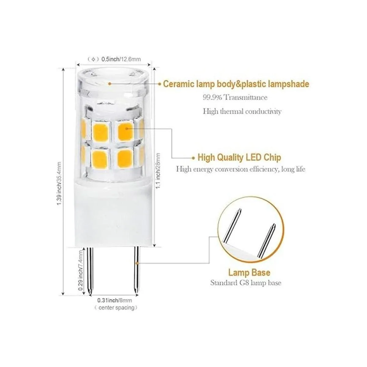 La versión mejorada incorpora chips duales La nueva bombilla GY8G8 mejora la estabilidad del trabajo LED. En comparación con la versión antigua de la bombilla LED G8 en el mercado, el nuevo control de chip hace que la fuente de luz sea más estable, ahorra energía 2 veces y proporciona una comodidad más natural