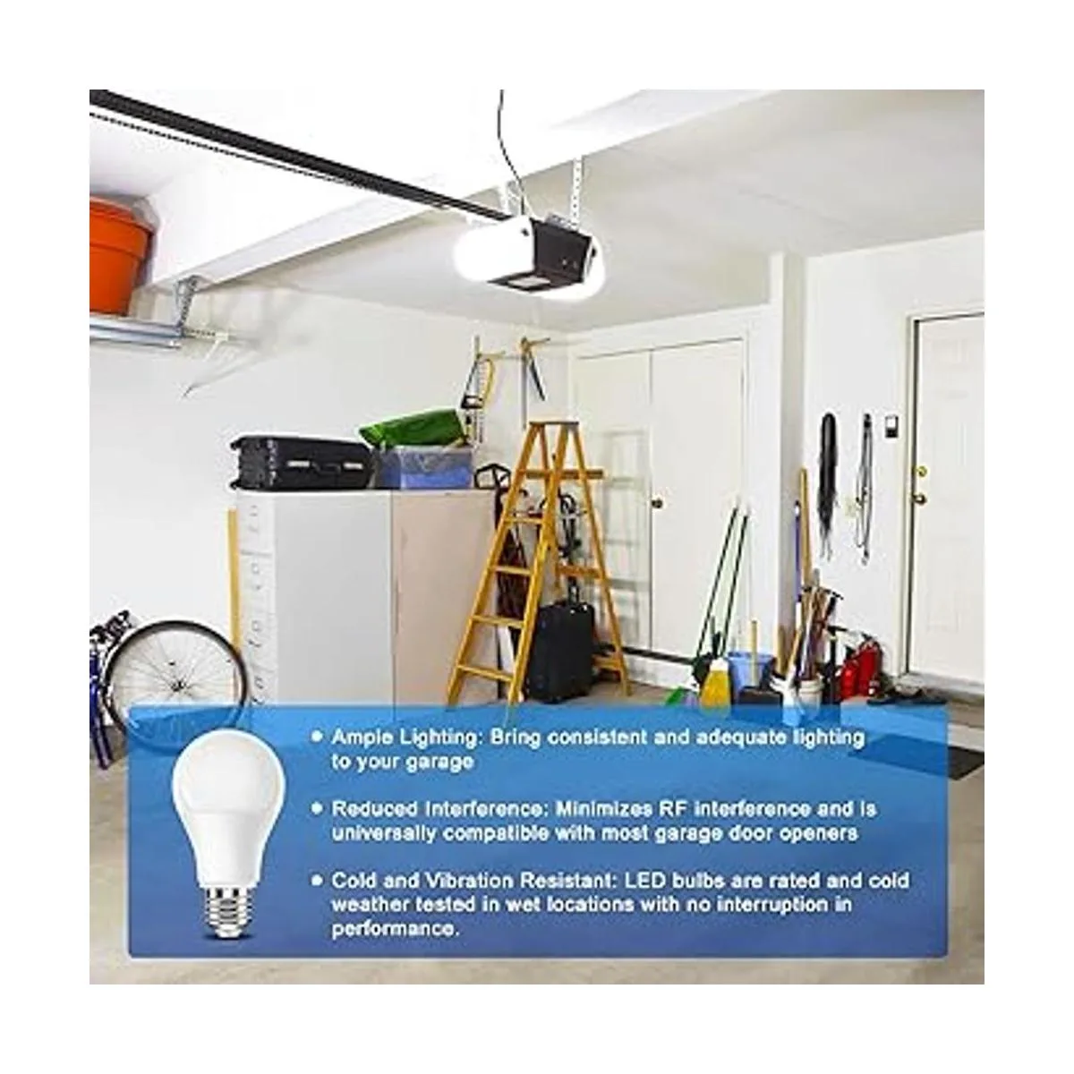 Energy Saving LED Bulb LED garage door opener light bulb provides 9W brightness, which is equivalent to 60W incandescent light bulb, has a lifespan of 30,000 hours, saves more than 85 of electricity bills, and does not emit any ultraviolet or other polluting radiation.