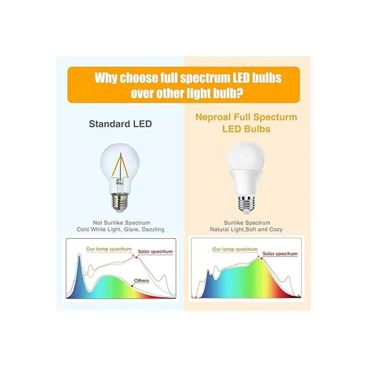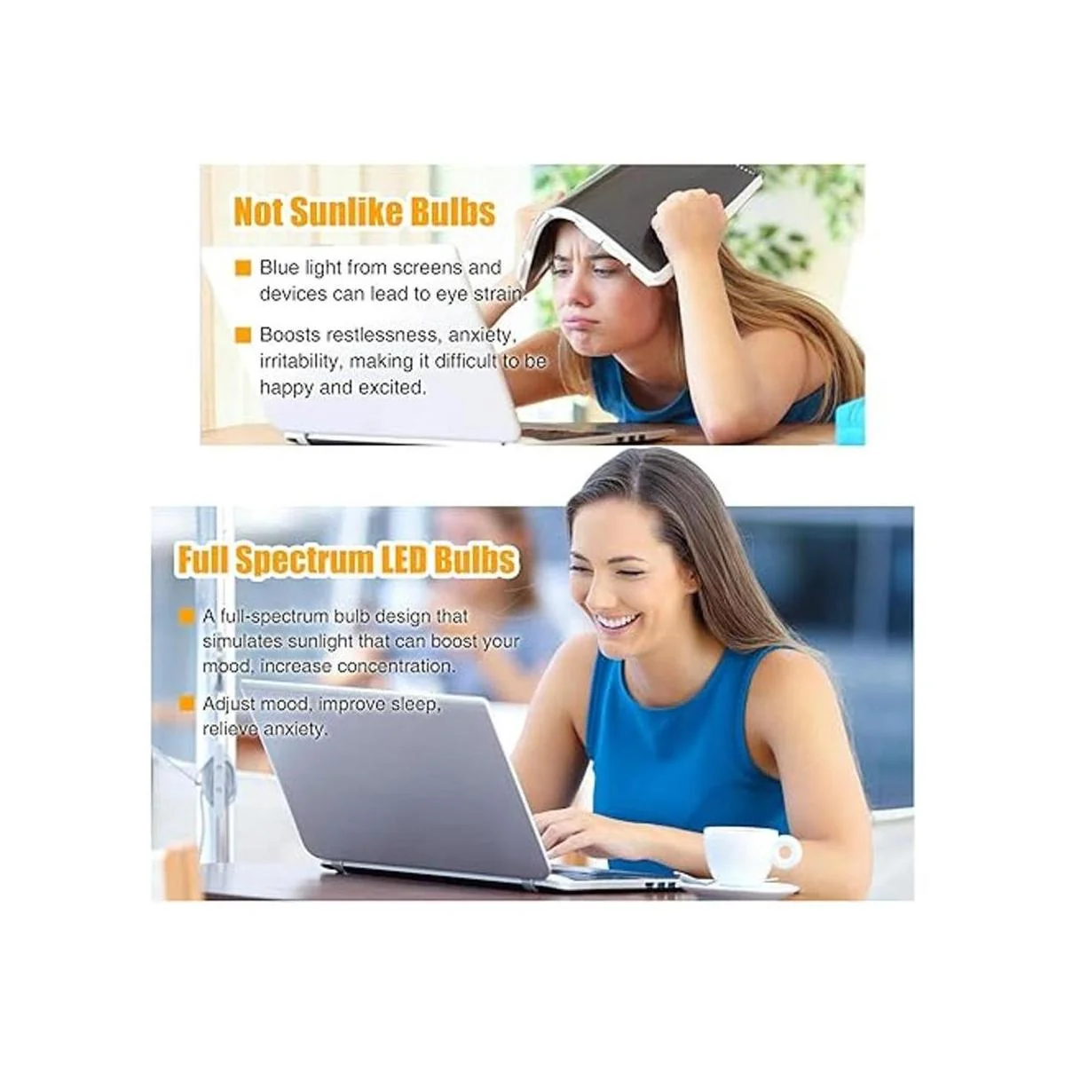 Bombilla de espectro completo En otoño e invierno, debido a la influencia del brillo, la temperatura corporal y las hormonas que afectan los cambios de estado de ánimo de las personas, lo que conduce a infeliz. Bombilla neporal de espectro completo con chips LED integrados sin rayos UV para simular la luz solar natural, mejorando tu pasión y eliminando la irritabilidad, lo que te hace feliz y feliz todos los días.