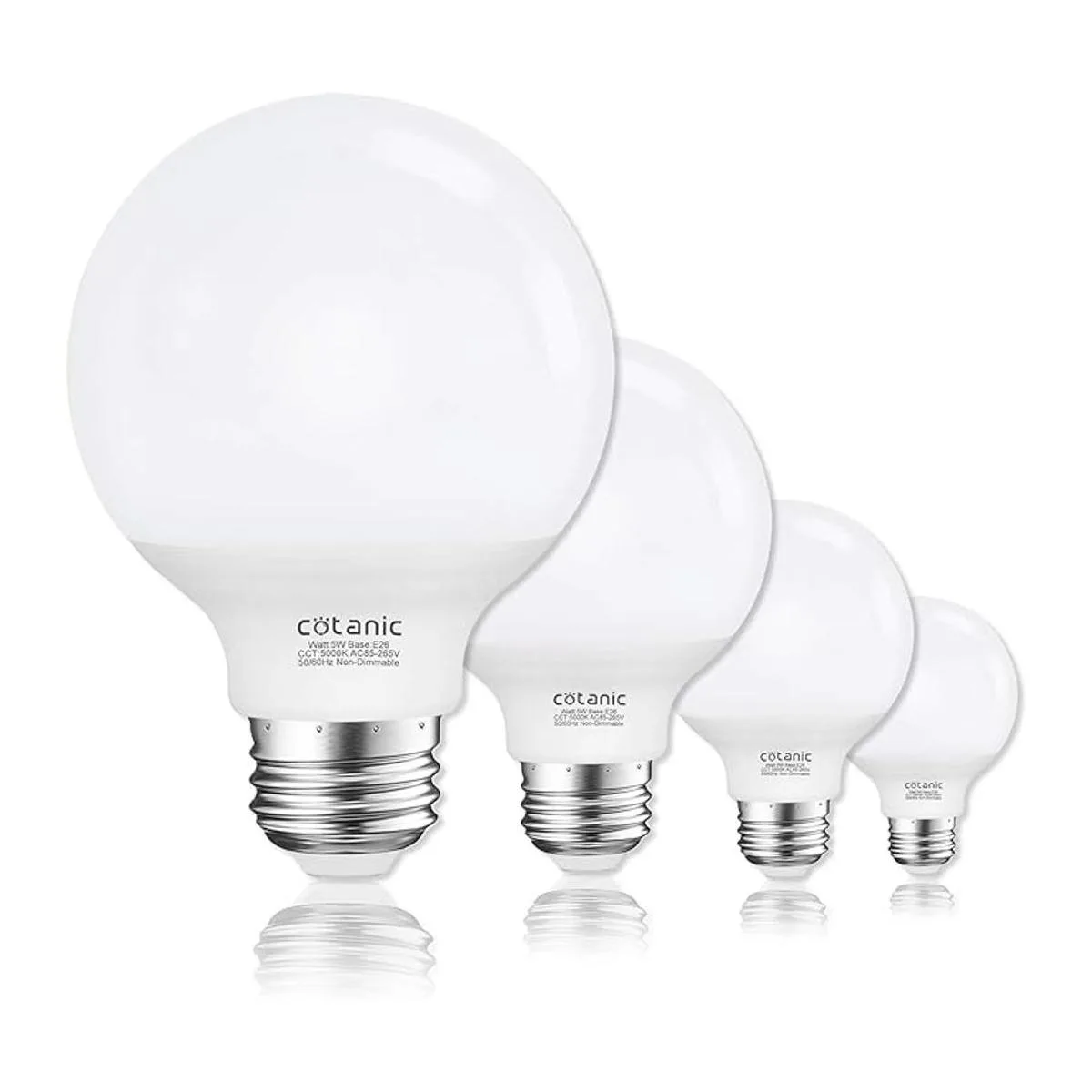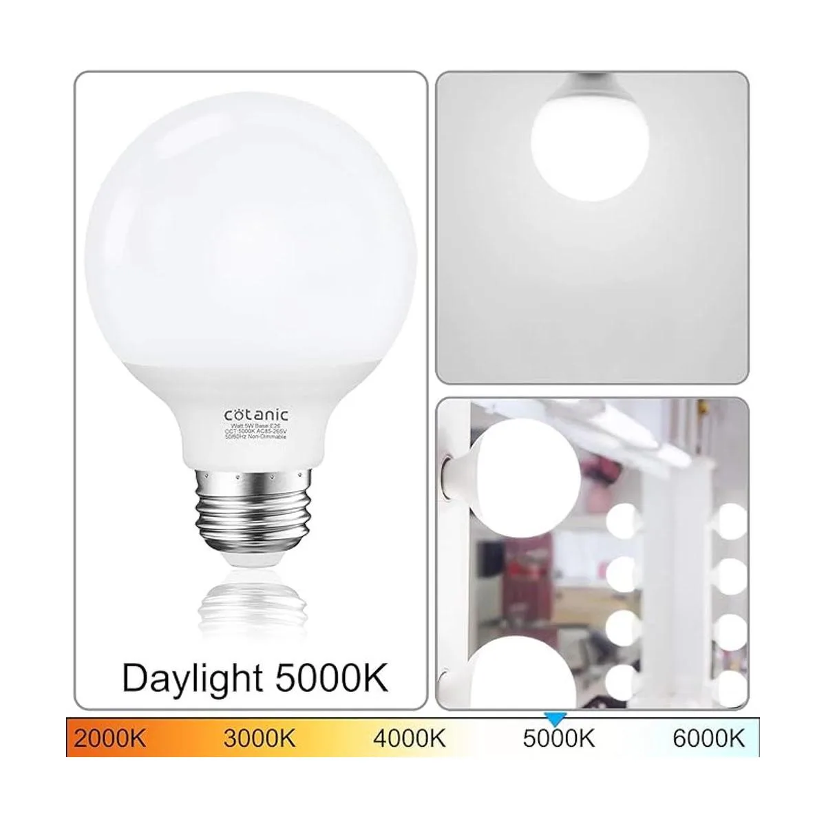 Bombilla de tocador de 5000 K, bombillas LED G25 para espejo de tocador de baño, base media Cotanic E26, equivalente incandescente de 5 W, 60 W, 500 lúmenes, no regulable, paquete de 4