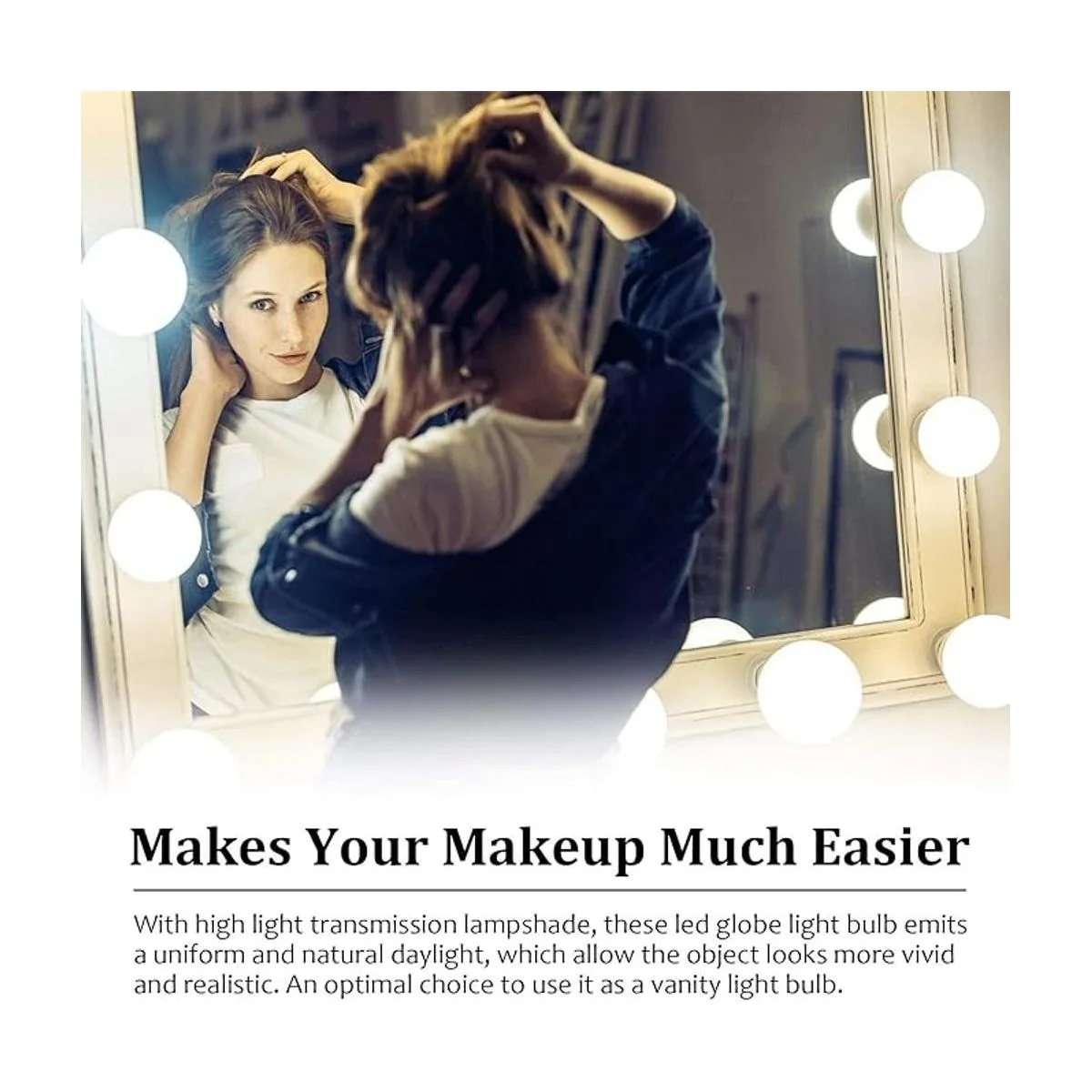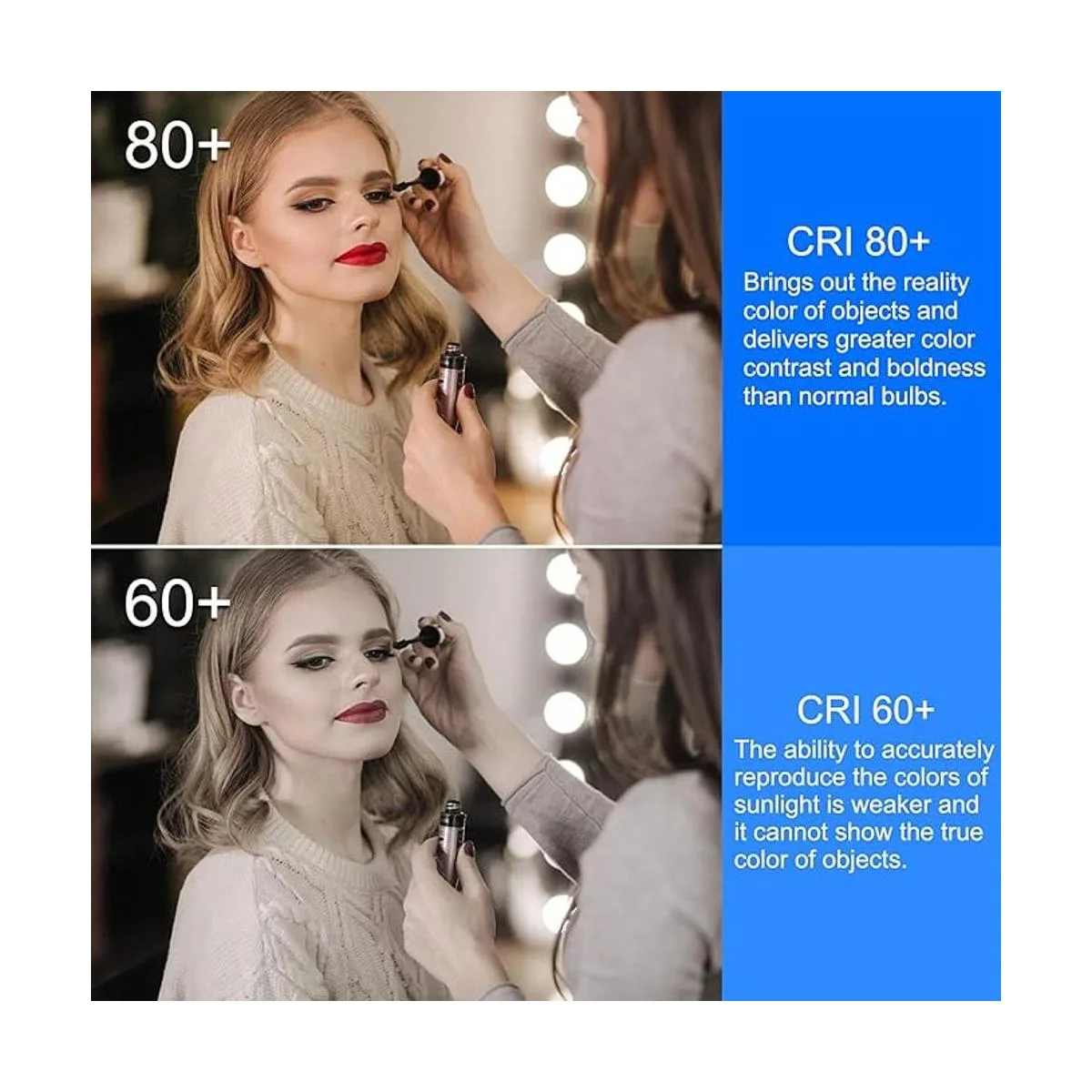 Luces de espejo de tocador seguras: la seguridad de las bombillas es necesaria, especialmente para espejos de tocador que están cerca de la cara. Cumple con los estándares de seguridad del producto, la bombilla LED de tocador hecha de material ignífugo es segura y fiable para el maquillaje. Hay un fusible de seguridad dentro de la bombilla y se cortará automáticamente cuando encuentre una corriente alta anormal para evitar daños LED o desastres de incendio.