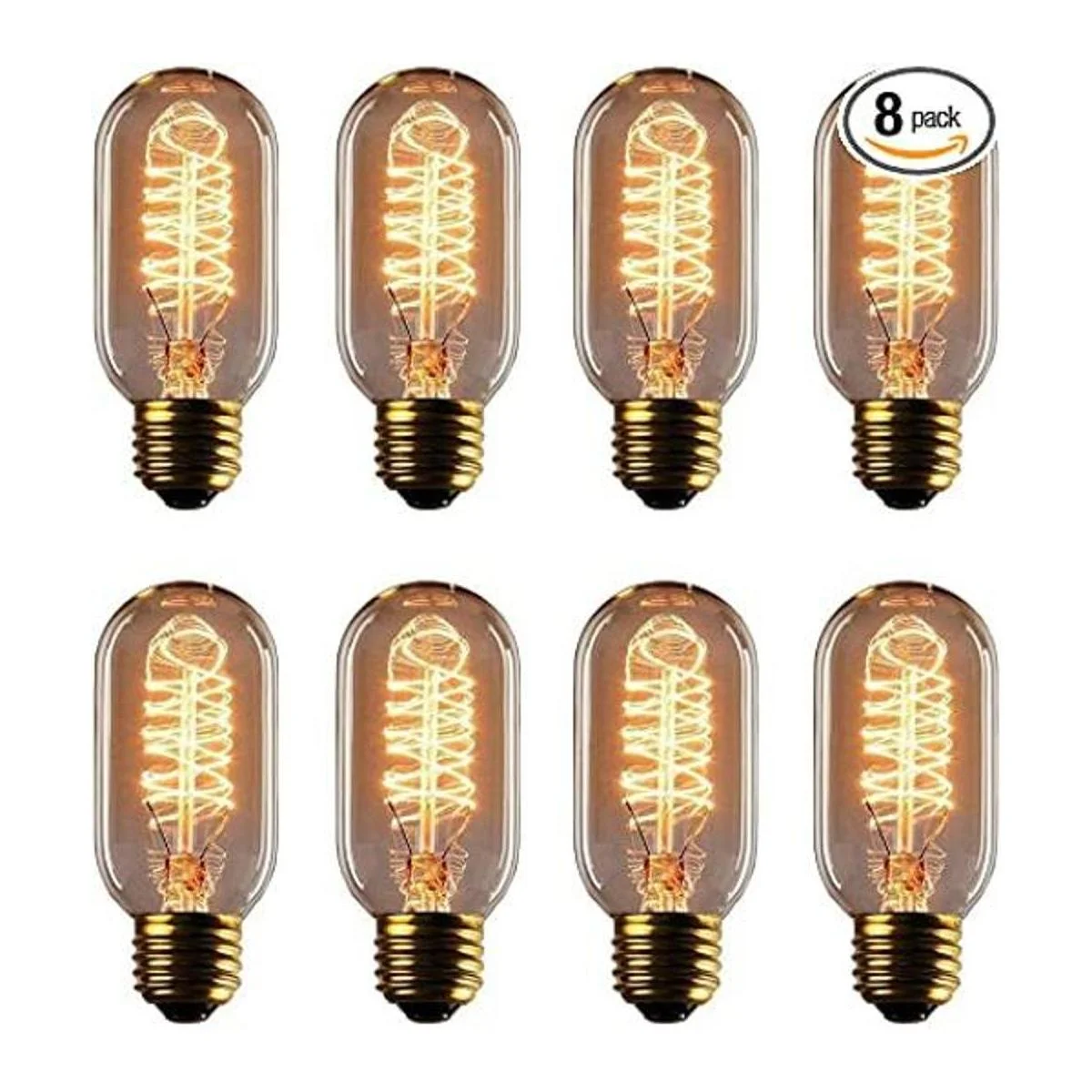 Bombilla Edison Vintage 25 W T45 Filamento espiral Regulable Paquete de 8 65 lúmenes