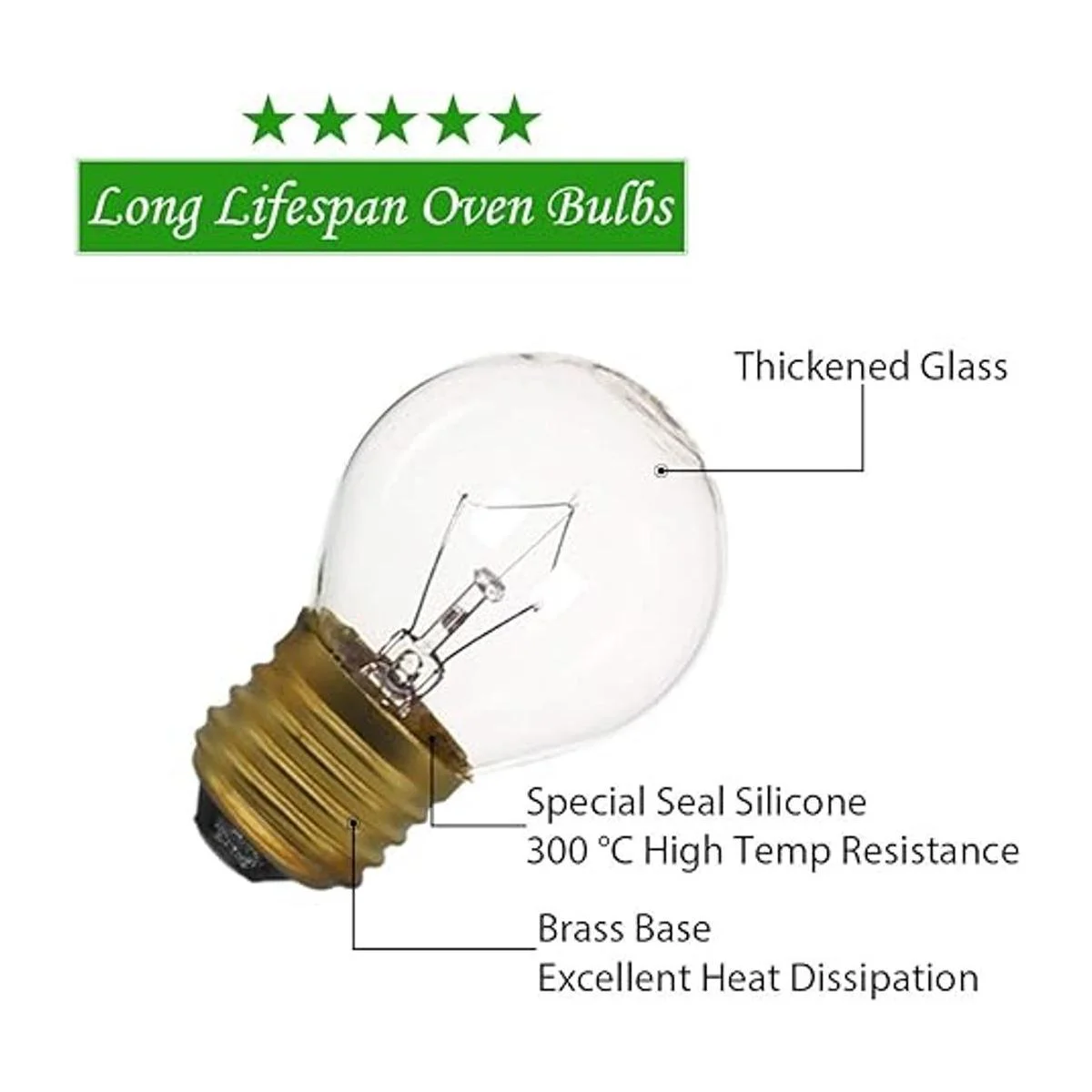 Vida útil más larga: estas bombillas de horno tienen una tasa de 1500 horas, pueden resistir en ambientes de 570 grados Fahrenheit 572.0 F Celsius