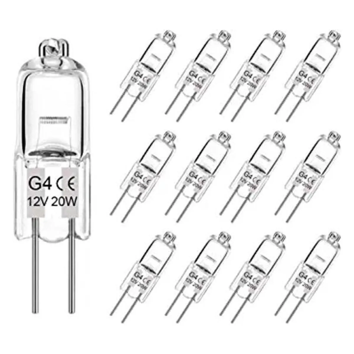 Bombilla halógena G4 de 20 W, paquete de 12 bombillas G4 regulables para luz de disco debajo del gabinete, candelabros, iluminación de pista, CACC de 12 voltios, base T3 JC bipin G4, blanco cálido 2700K3000K